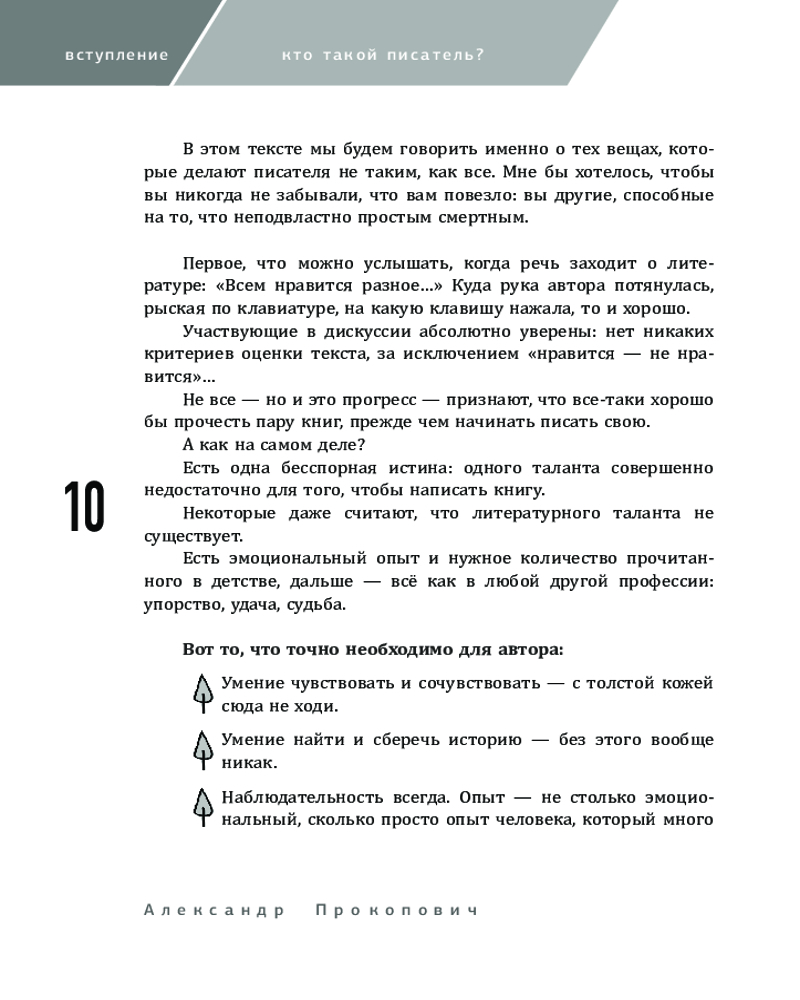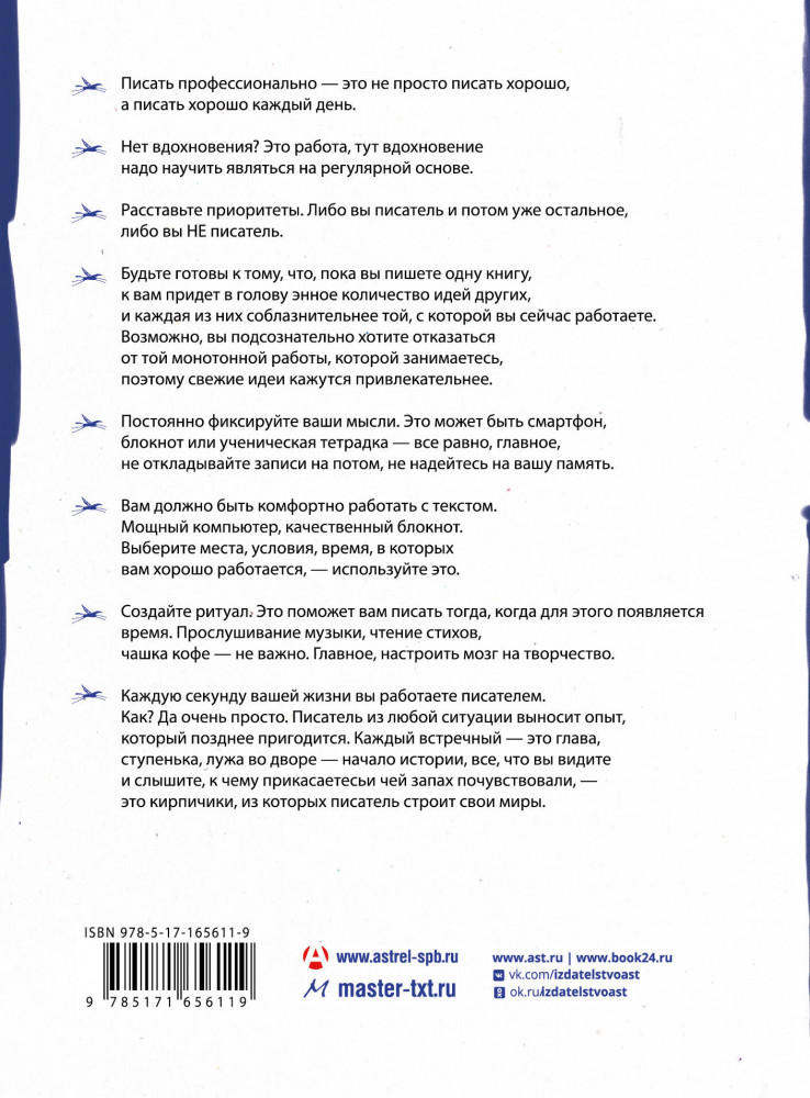 💳 Оплатить за товар можно при получении 🇰🇿 Есть бесплатная доставка по Казахстану от 1 дня 🎁 Копите бонусы с каждой покупки Серия: Мастер текста «Читателям этого знать не надо, но авторы должны отдавать себе отчет, что мастер слова — это нечто большее, чем человек, который написал некую историю. Некую историю раз в жизни может написать любой нормальный человек. Скорее всего, это будет автобиографический текст и скорее всего он будет неплох: ведь если выжать в одну книгу все самое забавное, что было в жизни, должно получиться как минимум нескучно. Писатель — это другое. В этой книге мы будем говорить именно о тех вещах, которые делают писателя не таким, как все». Герой, идея, мир, история вашей книги, структура текста, композиция, жанры — об этом, а также о том, как работать с издательством, что нужно знать об авторском праве, рекламе и продвижении книг. Александр Прокопович — главный редактор «Астрель-СПб» (издательство «АСТ»), писатель и сценарист, организатор и преподаватель литературных курсов «Мастер текста», создатель и продюсер литературной премии «Рукопись года» и «Самого страшного фестиваля». |