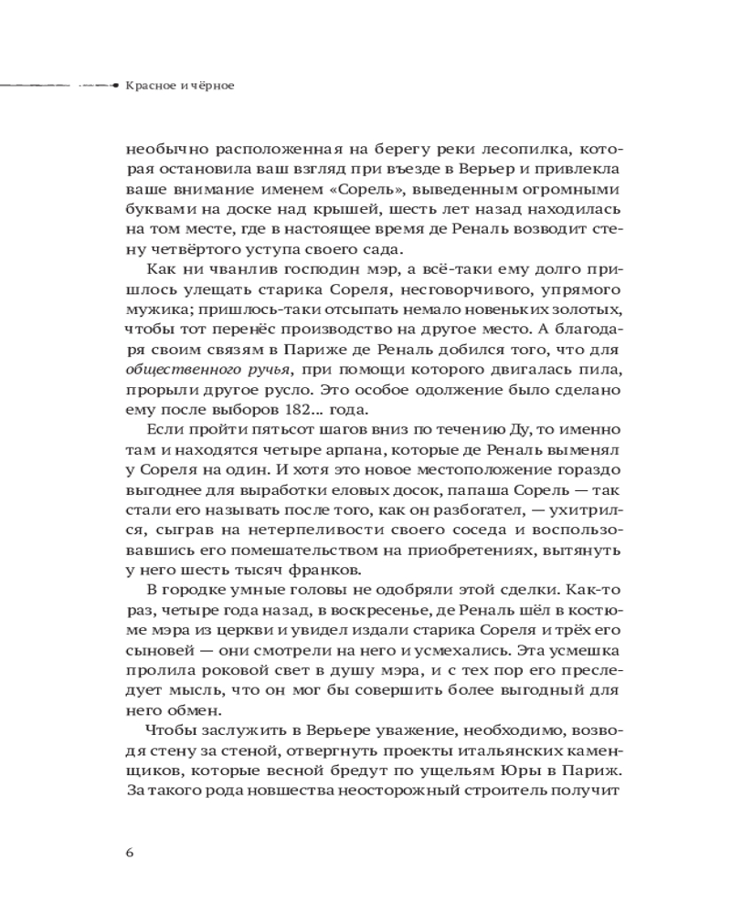 «Красное и Черное» (Le Rouge et le Noir) французского писателя Мари-Анри Бейля (куда более известного под своим литературным псевдонимом «Стендаль») - это, пожалуй, ключевой образчик-предшественник «психологического реализма» - направления, которое ко второй половине XIX века стало преобладающим в европейской литературе сменив собой эпоху романтизма. К 40-м годам XX века под влиянием тогдашних реалий, литературного наследия таких авторов как Достоевский, Эдгар По и тот же Стендаль, американского «крутого детектива» из палпа 30-х и его главных апостолов в лице Чандлера, Хэммета и Кейна, а также совершенно новой эстетики вобравшей в себя черные фетровые шляпы, кроваво-красную губную помаду, дымящиеся сигареты, дождливые улицы больших городов, порочность человеческих душ и ощущения опасности, обреченности и одиночества - психологический реализм реинкарнирует в «черное кино», тот самый «фильм-нуар», а в дальнейшем и в нуар-прозу. И, вне всяких сомнений, «Красное и Черное», как и, во многом, наследующее ему «Преступление и Наказание», это прото-нуар 19 века. Как ни крути, но «Красное и Черное» - это типичная для нуара история взлёта и падения амбициозного человека, который готов пойти на всё ради реализации своих планов (из наиболее ярких примеров та же «Аллея Кошмаров» Уильяма Грешема или фильм «Из прошлого» с легендарным Робертом Митчемом в главной роли). Но в реалиях Франции «после Наполеона» и с упором на чувственное безрассудство главных героев. История простого паренька из семьи бедного плотника, который мечтает «выбиться в люди», но по пути теряет всё больше человечности и шагает по головам других, а в конце жестоко за это расплачивается, сегодня навряд ли бы стала чем-то инновационным в литературе, но это сегодня. А в 1830-х годах книга вызвала просто бурю и заложила основы под целые жанры и субжанры. Проза Стендаля тягучая и детальная, герои раскрыты таким образом, что сам читатель решает, положительный ли тот или иной персонаж, или отрицательный. Никакой морально-этической оценки героям на страницах книги не выносится. Вы сами её вынесите. Если захотите. Зато даны предельно-подробные психологические портреты представителей самых разных слоев французского общества того времени. Автор интересно смешивает самые различные темы в своем произведении: политику и религию, верность и прелюбодеяние, богатство и бедность, любовь и ненависть. Лично для меня «Красное и Черное» всегда было в первую очередь о всепоглощающих амбициях, необдуманных поступках, ошибках молодости и губительных проявлениях честолюбия. О недостижимости той «мечты», что и не должна бы становиться мечтой. О кризисе личности, когда человек теряет себя настолько, что уже не знает какой он настоящий. О любви, которая могла бы спасти, но была отвергнута в силу гордыни и полного непонимания тех чувств, что кипят в тебе. Тебе выпало красное, но ты сам упорно продолжал ставить на черное… И самое главное, темы тут затронутые по-прежнему актуальны и для нашей эпохи, ибо сколько бы столетий не прошло, но человеческую природу и страсти, что её обуревают, ничто не изменит. Наверное, это и делает «классику» классикой. Она вне времени. Относительно самого издания - всё просто прекрасно. «Комильфо» держит марку на самом высоком уровне. Отличное визуальное оформление, белоснежная и плотная бу
