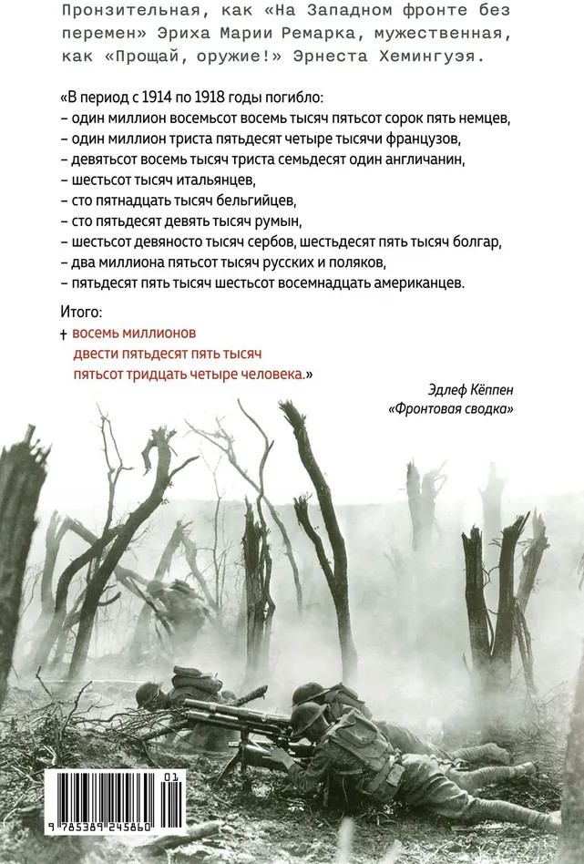 💳 Оплатить за товар можно при получении 🇰🇿 Есть бесплатная доставка по Казахстану от 1 дня 🎁 Копите бонусы с каждой покупки Серия: История войн и военного искусства Опубликованные в 1930 г. «Будни добровольца: в окопах Первой мировой» стали одним из знаковых романов о Первой мировой войне, наряду с произведениями Э.М. Ремарка «На Западном фронте без перемен», Р. Олдингтона «Смерть героя» и Э. Хемингуэя «Прощай, оружие!». Участник Первой мировой войны, ушедший на фронт добровольцем с третьего курса философского факультета университета, Эдлеф Кёппен создал «монтажный роман», где оригинальные документы — цитаты из воззваний императора Вильгельма II, указы цензурных органов, газетные сообщения органично вплетены в сюжет, а прообразом главного героя Адольфа Райзигера является сам автор. «Будни добровольца: в окопах Первой мировой» стала одной из десятков тысяч книг, публично сожженных в Германии в 1933 году, и не публиковалась в ФРГ до 1976 г., а в ГДР до 1981. В начале века роман вновь привлек к себе внимание, был многократно переиздан и переведен на несколько языков. 20 век, Германия, Первая мировая война, война, исторический роман, личные истории, роман-биография, свидетельства очевидцев. |