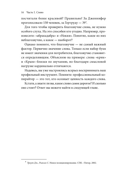 Делайте это — с КЛАДОМ в руках, т. е. читая книгу Элины Слободянюк. За этим увлекательным занятием вы освоите базовые принципы работы со словом, предложением и текстами. Проанализируете массу интересных примеров из практики отечественных (и не только) рекламистов, научитесь адекватно оценивать написанное и придуманное.
