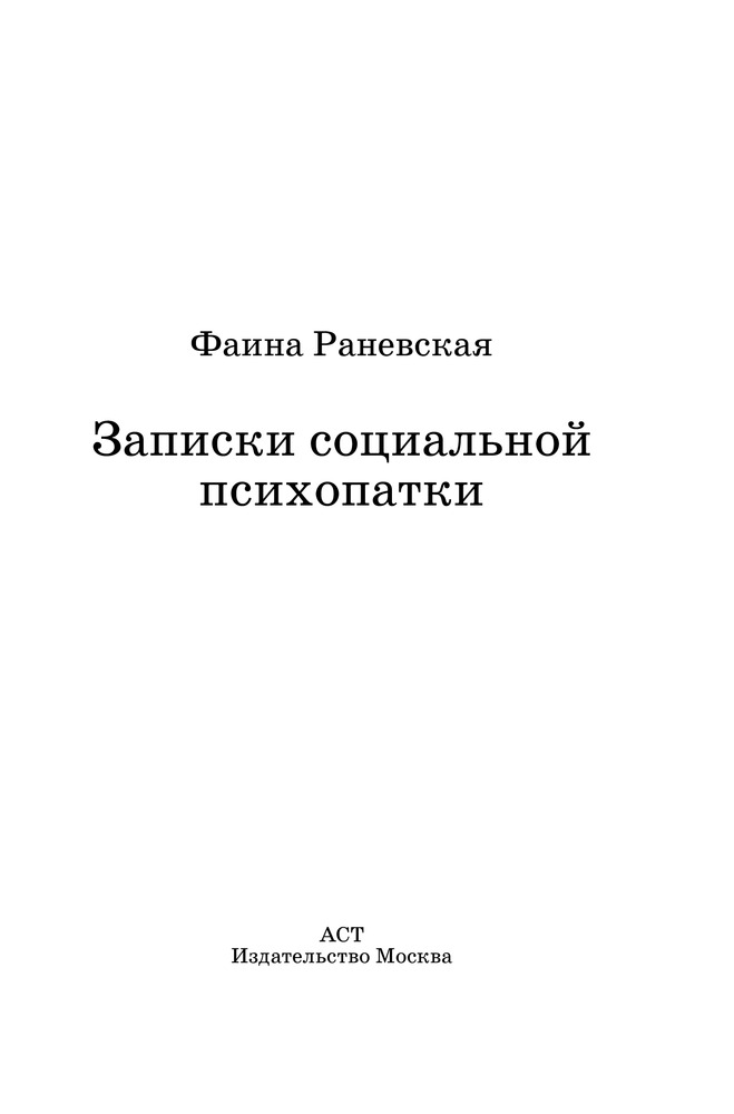 | Записки социальной психопатки Фаина Георгиевна Раневская