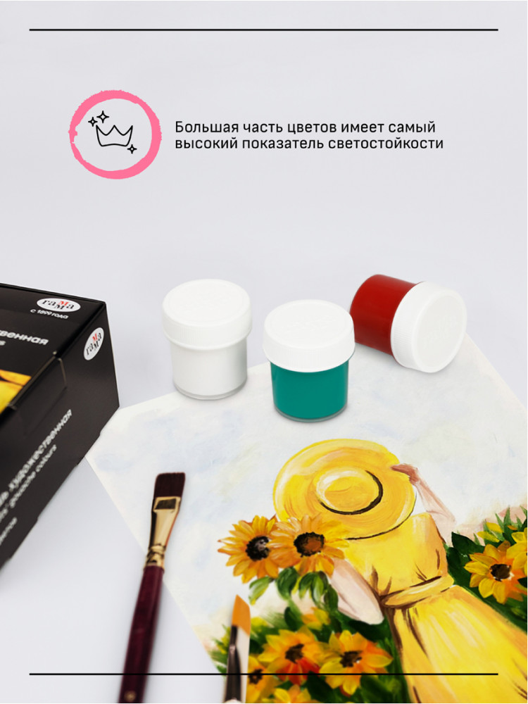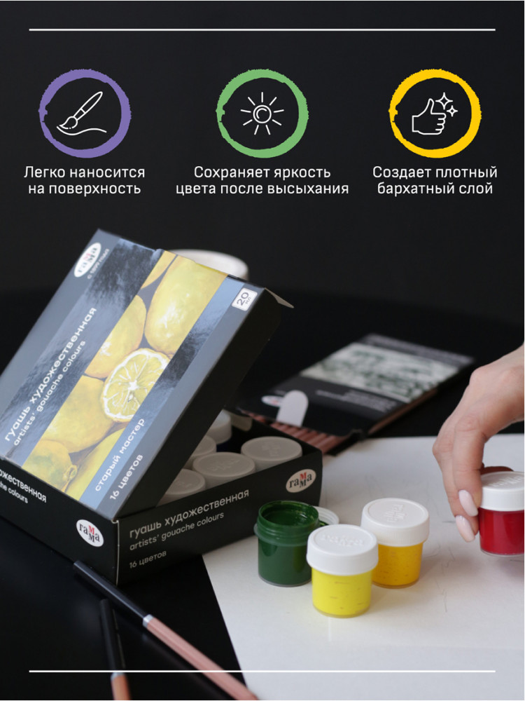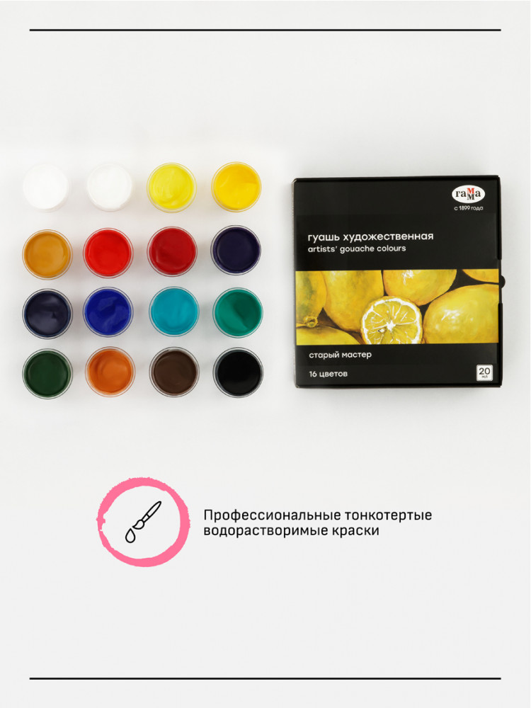 💳 Оплатить за товар можно при получении 🇰🇿 Есть бесплатная доставка по Казахстану от 1 дня 🎁 Копите бонусы с каждой покупки Серия: Старый мастер Гуашь художественная «Гамма» серии «Старый мастер» имеет уникальную рецептуру, разработанную в собственной исследовательской лаборатории завода совместно с художниками. Краски изготавливается из тонкодиспесных пигментов, связующего, в состав которого входит раствор растительного клея — гуммиарабика высшей степени очистки. Краска легко наносится на поверхность, благодаря специальным добавкам сохраняет яркость цвета после высыхания, создавая плотный бархатистый слой. Гуашь обладает высокой укрывистостью, отличной разносимостью, а также хорошо смешивается между собой. Большая часть цветов имеет самый высокий показатель светостойкости. |