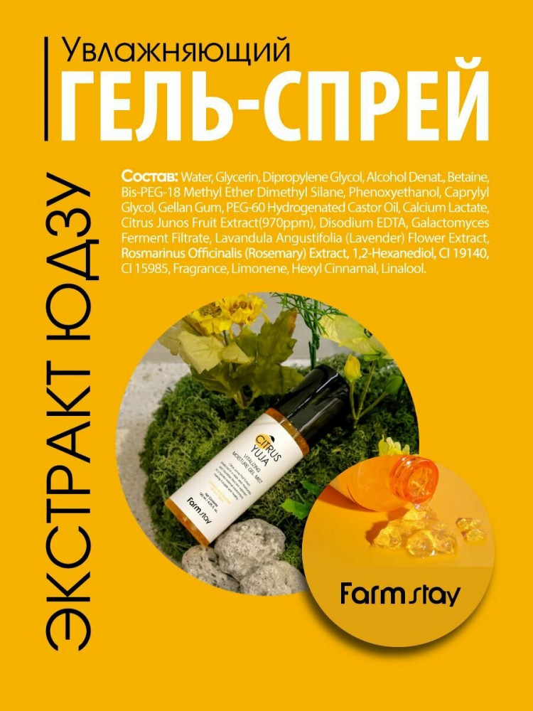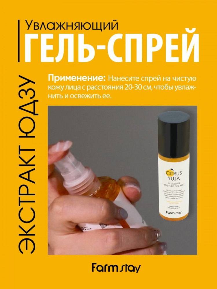 FarmStay Гель-спрей для лица с экстрактом юдзу «Citrus Yuja Vitalizing Moisture Gel Mist»В данный момент этот товар отсутствует в продаже. Возможно, у нас найдется аналогичный или похожий товар здесь. Для восстанавливающего ухода за лицом косметическая марка «Farm Stay» предлагает использовать гель-спрей «Citrus Yuja Vitalizing Moisture Gel Mist», который обогащен экстрактом юдзу, обладает освежающими, увлажняющими и оживляющими качествами. Средство с высокой концентрацией витаминов и антиоксидантов можно использовать в любое время суток, когда коже требуется моментальная поддержка, защита и восстановление. Экстракты цитрусов — щедрый источник органических кислот. С их помощью средство активно тонизирует кожу, восполняет дефицит влаги, устраняет ощущение сухости, тусклость и стягивание. Входящие в состав антиоксиданты берут на себя защиту покровов от разрушительного влияния свободных радикалов. |