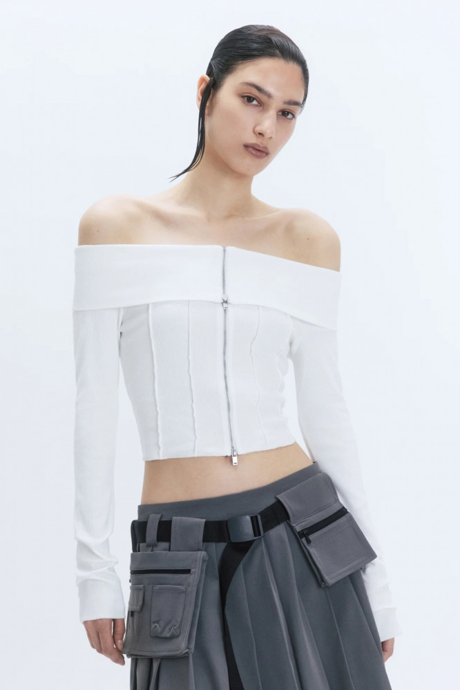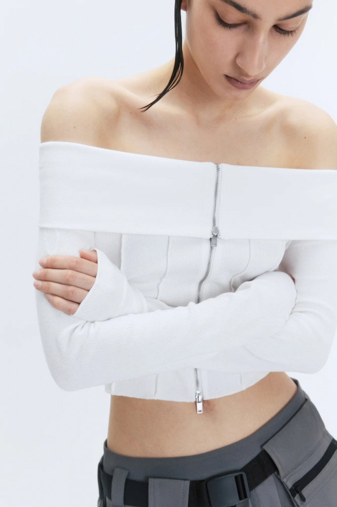 Однотонный джемпер с открытыми плечами из новой осенней коллекции станет твоим фаворитом на несколько сезонов. Носи блузку с мини-юбкой поверх широких брюк, смело выражая свою индивидуальность. Создавай с однотонным лонгсливом офф-шолдерс образ «офисной сирены», надевая с юбкой-карандаш и острыми лодочками. Отдай дань 2000-м и носи его с остающимися в тренде капри. Блузка-лонгслив с открытыми плечами станет базой твоих осенних аутфитов и подчеркнет твою женственность. Заверши образ удобной обувью и любимыми аксессуарами.