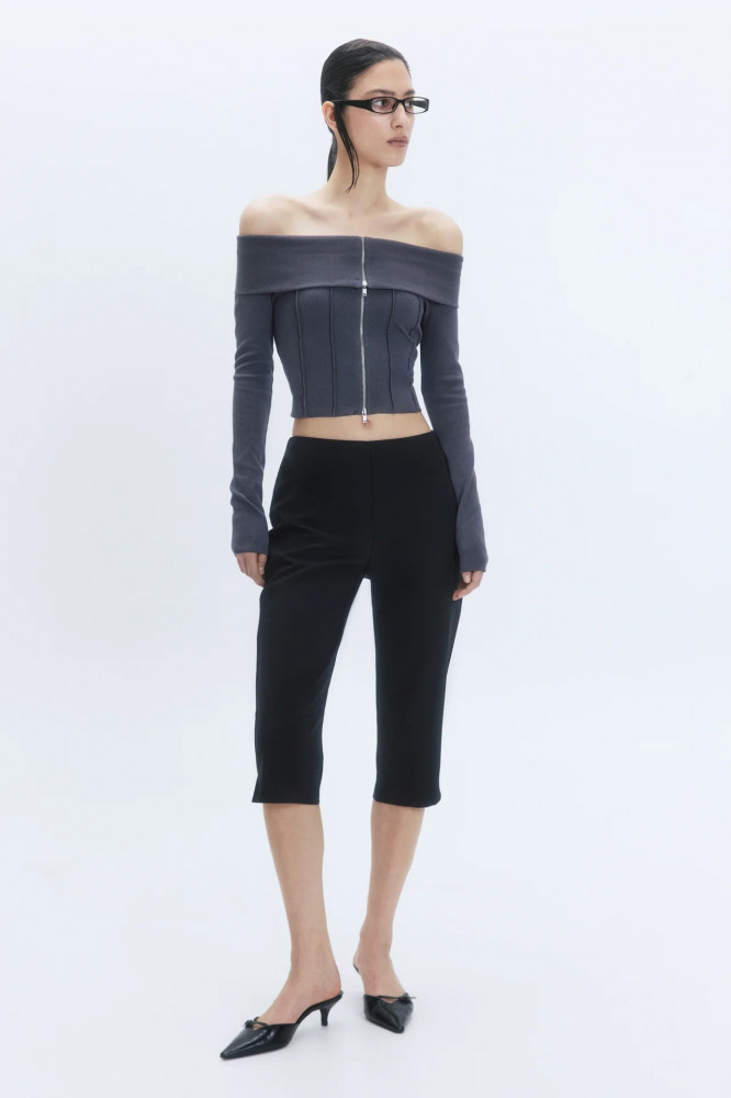 Однотонный джемпер с открытыми плечами из новой осенней коллекции станет твоим фаворитом на несколько сезонов. Носи блузку с мини-юбкой поверх широких брюк, смело выражая свою индивидуальность. Создавай с однотонным лонгсливом офф-шолдерс образ «офисной сирены», надевая с юбкой-карандаш и острыми лодочками. Отдай дань 2000-м и носи его с остающимися в тренде капри. Блузка-лонгслив с открытыми плечами станет базой твоих осенних аутфитов и подчеркнет твою женственность. Заверши образ удобной обувью и любимыми аксессуарами.
