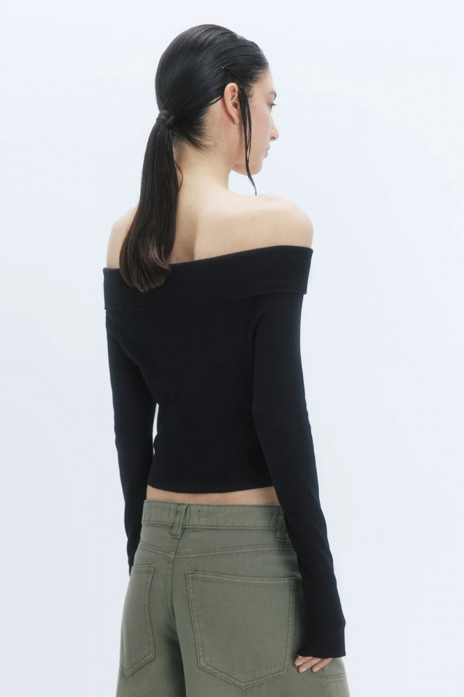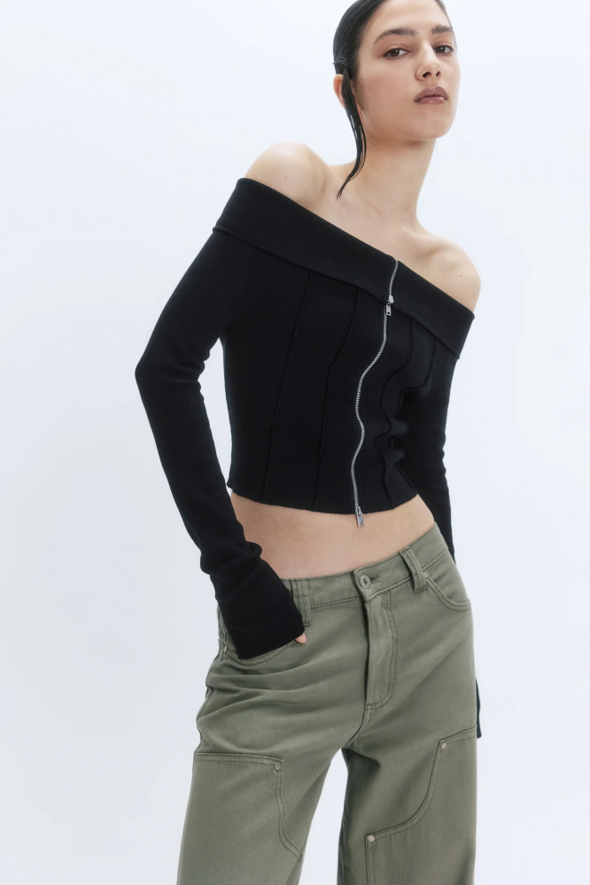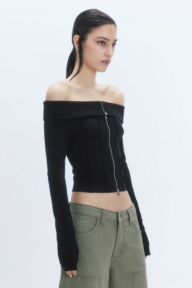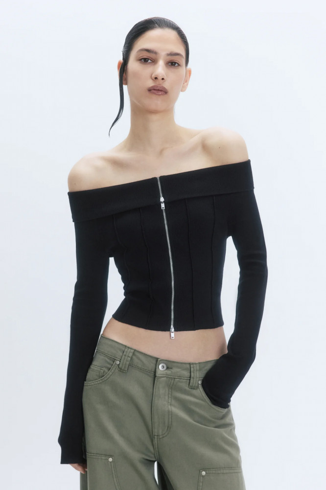 Однотонный джемпер с открытыми плечами из новой осенней коллекции станет твоим фаворитом на несколько сезонов. Носи блузку с мини-юбкой поверх широких брюк, смело выражая свою индивидуальность. Создавай с однотонным лонгсливом офф-шолдерс образ «офисной сирены», надевая с юбкой-карандаш и острыми лодочками. Отдай дань 2000-м и носи его с остающимися в тренде капри. Блузка-лонгслив с открытыми плечами станет базой твоих осенних аутфитов и подчеркнет твою женственность. Заверши образ удобной обувью и любимыми аксессуарами.