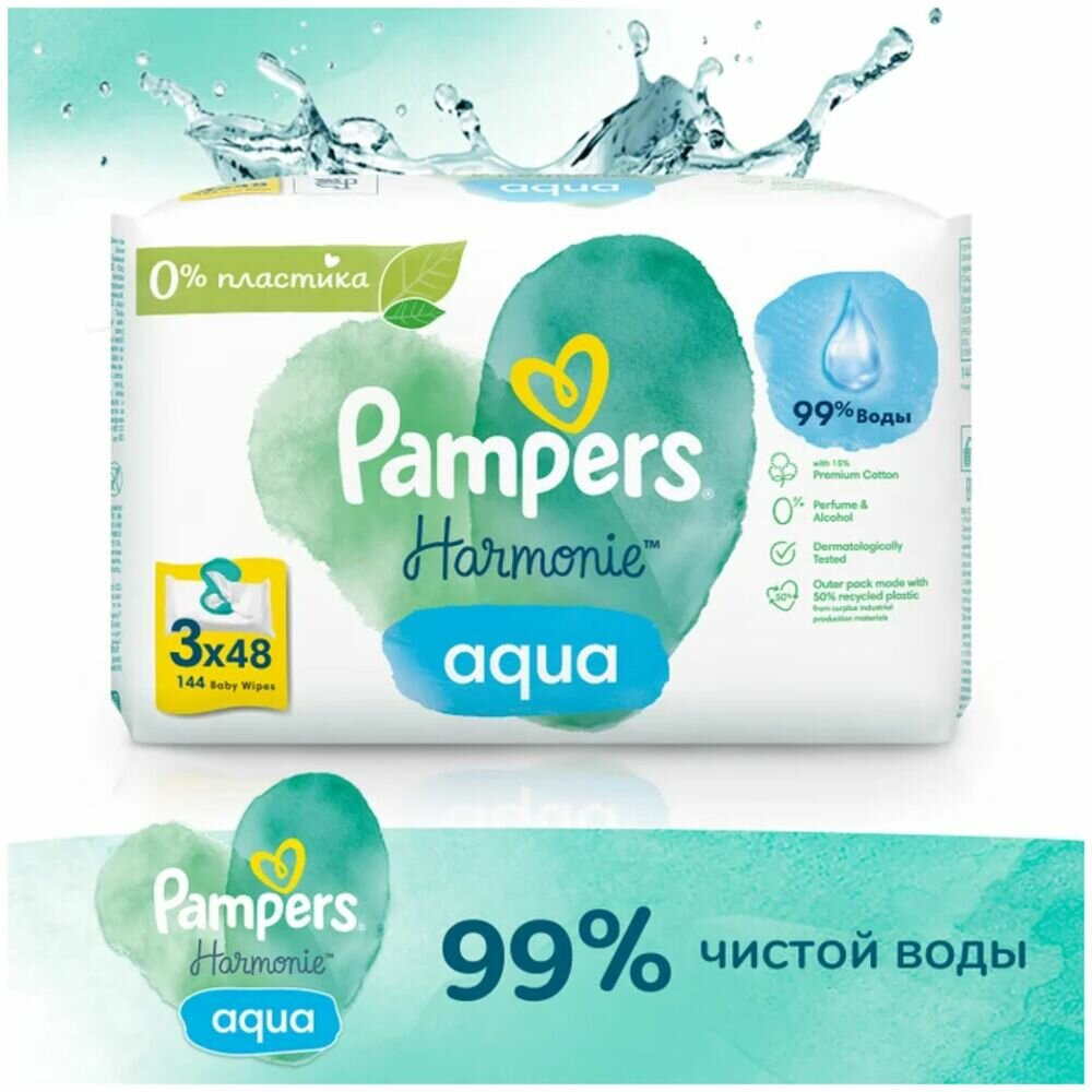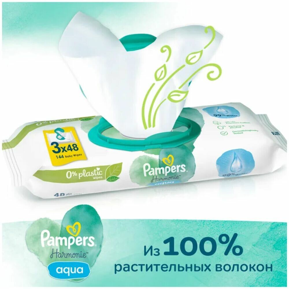 Pampers Салфетки детские влажные «Harmonie Aqua»-5% +38
