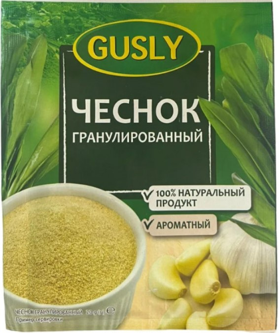 💳 Оплатить за товар можно при получении 🇰🇿 Есть бесплатная доставка по Казахстану от 1 дня 🎁 Копите бонусы с каждой покупки Чеснок ароматный с легкой остринкой. Отличный помощник, когда нет свежего чеснока. Подходит и дополняет блюда приготовленные из мяса, овощей и грибов, птицы и курицы, для холодца (заливных), для соуса. Гранулированный чеснок «Gusly»- это измельченный обезвоженный чеснок. Имеет консистенцию, похожую на кукурузную муку. |