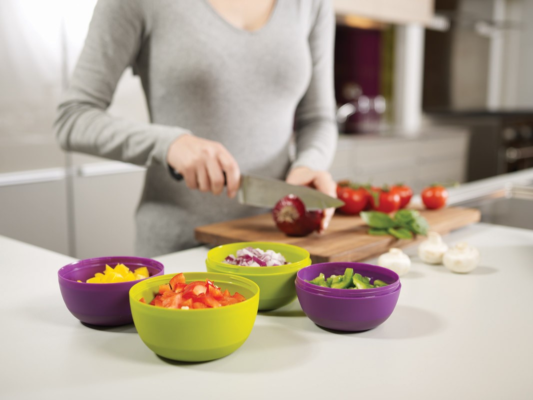 | Joseph Joseph Набор мисок для хранения "Prep&Store" (4шт), зеленый/фиолет