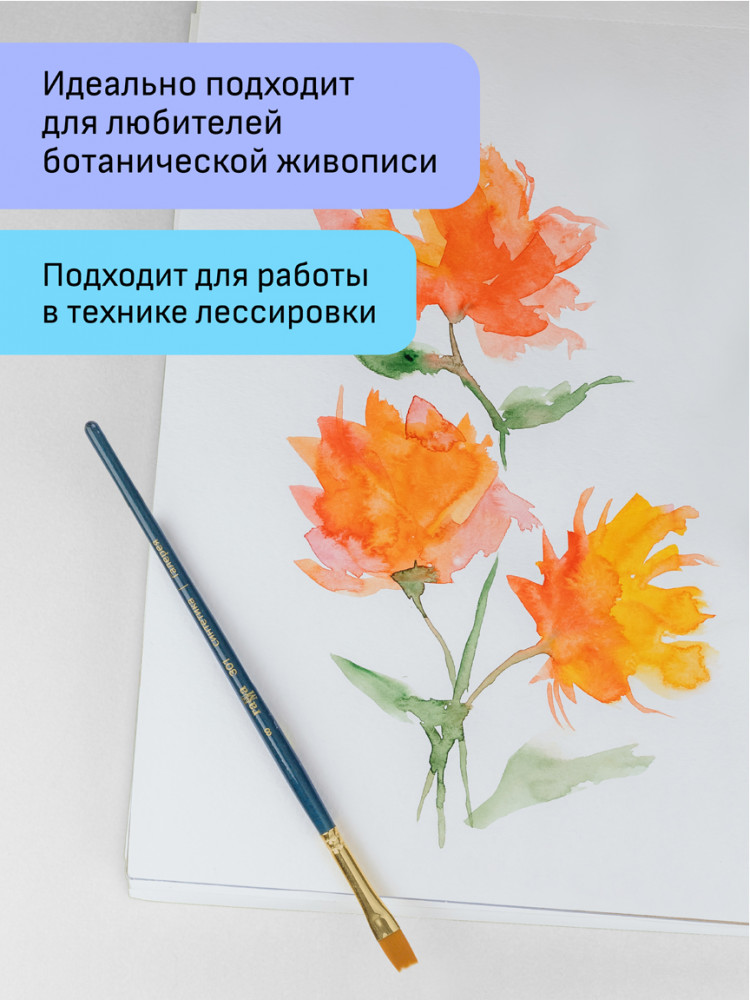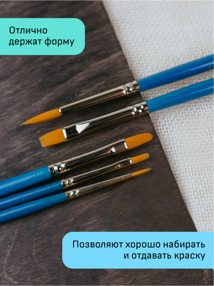 Тончайший синтетический волос, используемый при производстве кистей данной серии, позволяет хорошо набирать и отдавать краску, при этом отлично держит форму, обладает большой упругостью и позволяет лучше контролировать мазок. Кистью легко писать детали, выполнять заливки и моделировать объём.