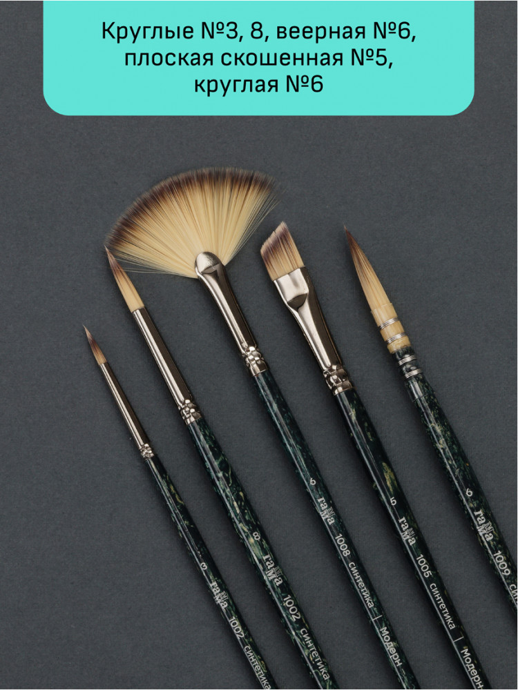 💳 Оплатить за товар можно при получении 🇰🇿 Есть бесплатная доставка по Казахстану от 1 дня 🎁 Копите бонусы с каждой покупки Серия: Модерн Набор художественных кистей ГАММА серии «Модерн» состоит из 5 кистей востребованных форм и размеров: круглые № 3, 8, веерная № 6, плоская скошенная № 5, круглая № 6 французское крепление. Кисти универсальны и подойдут для красок разной консистенции. |