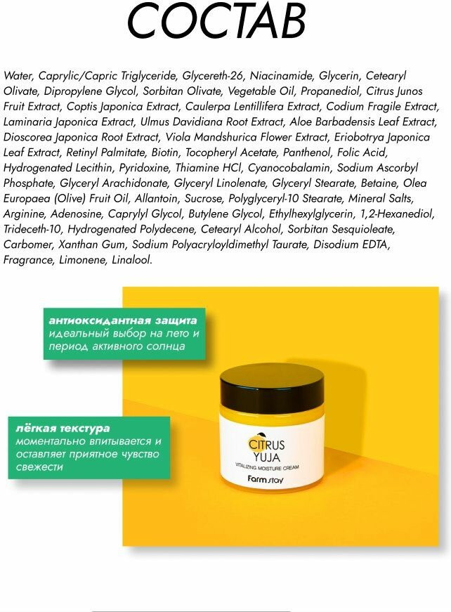 FarmStay Крем для лица с экстрактом юдзу «Citrus Yuja Vitalizing Moisture Cream»