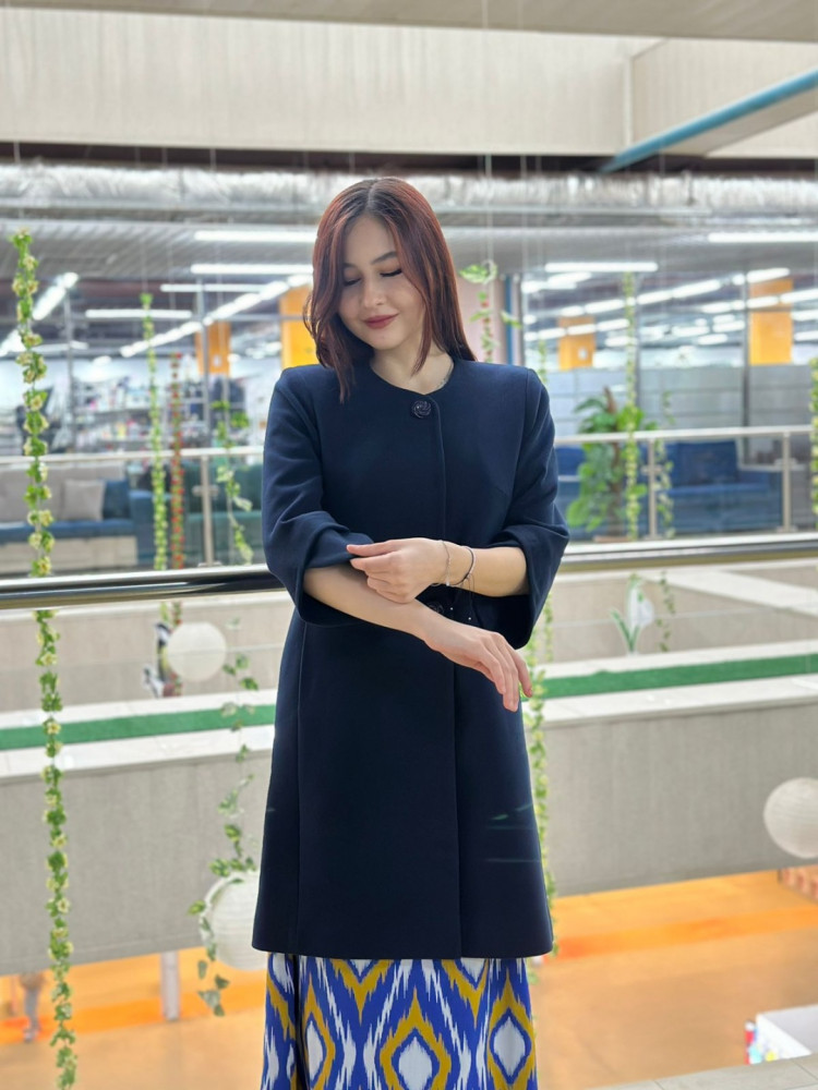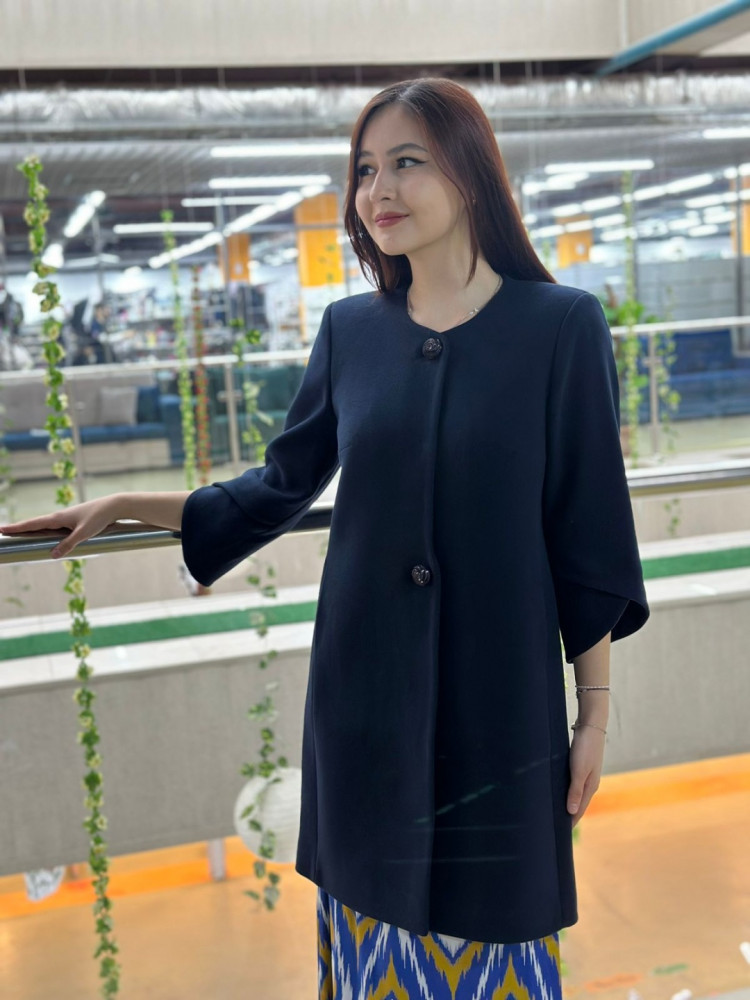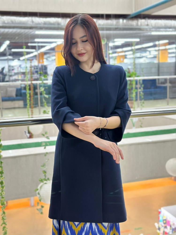 Пальто сшито из итальянского кашемира, ткань очень плотная и в то же время нежная, мягкая и очень приятная на ощупь. Модель без ворота с круглым вырезом, что очень стильно и прекрасно подойдет для аксессуаров — шарфов, платков и палантинов. Застежка комбинированная и это придает определенный шарм верхней одежде, так как фурнитура тоже итальянская и подобрана под модель. Рукав 3/4 с фигурным краем в виде лепестков. Длина пальто очень актуальная, придает утонченность и нежность фигуре. Уход за пальто очень прост: хотите, можете пользоваться химчисткой, хотите используйте стирку автомат при 30 градусах на режиме деликатный или шерсть. Глажка с паром.