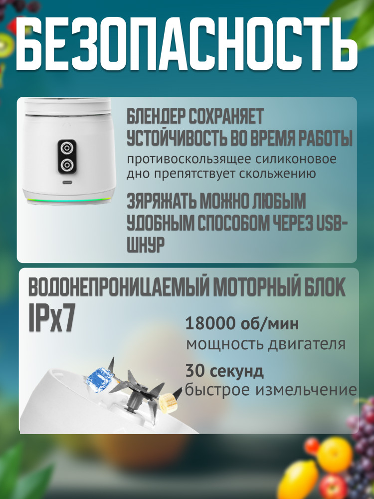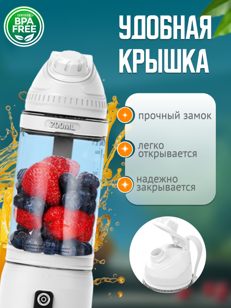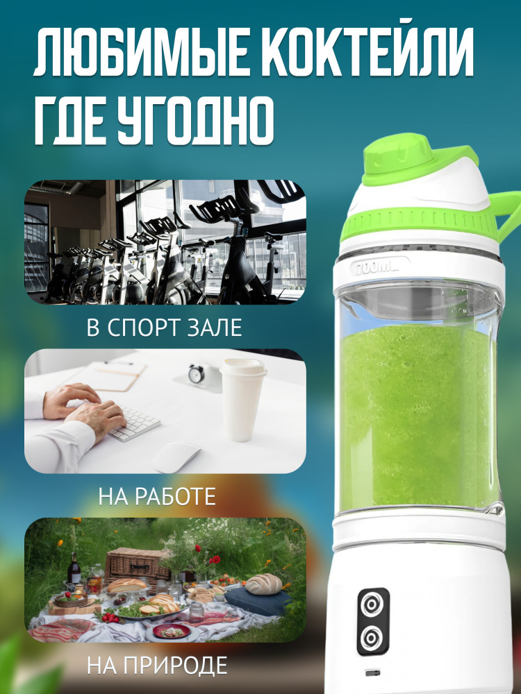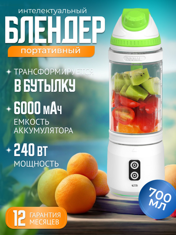 Емкость 700 мл, мощность 240 Вт и водонепроницаемость уровня IPx7 делают этот блендер (шейкер для коктейлей) идеальным спутником в поездках, тренировках или просто на каждый день на кухне. Также не останется незамеченным двухцветный индикатор и нескользящее дно! И с запуском в один клик, использовать его стало еще проще! Компактный размер, надежный механизм с защитой от перегрузки и инновационная форма 6-ти ножей — все это делает наш блендер портативный непревзойденным выбором для тех, кто ценит комфорт, качество и стиль. Наслаждайтесь свежими и вкусными напитками в любое время с нашим портативным бутылкой-блендером!