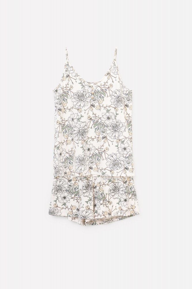 Комплект для комфортного сна из трикотажного полотна супрем с набивным рисунком. В составе 100% натуральный хлопок. Майка на регулируемых бретелях. Приталенный силуэт. Шорты с мягким поясом на резинке удобно садятся по фигуре. Гладкий материал приятен к телу, не теряет форму и позволяет коже дышать. Все трикотажные полотна производятся в соответствии с нормами Швейцарского сертификата ЭкоТекс.