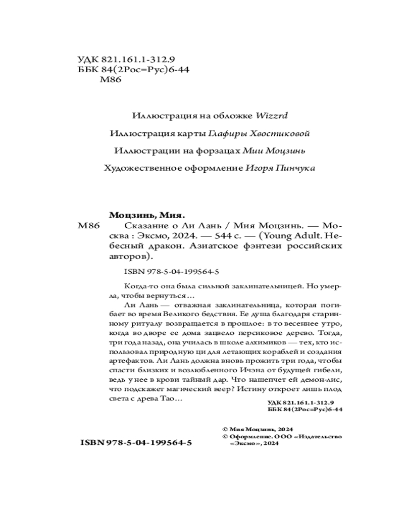 Серия: Young Adult. Небесный дракон. Азиатское фэнтези российских авторов Потрясающая новинка с азиатским сеттингом от Мии Моцзинь — писательницы из Сибири, фанатки китайской культуры. Роман вошел в Топ-10 шорт-листа литературного конкурса Author.Today «Воины Поднебесной». Для всех поклонников Китая, Востока и романов в духе «Восхождения фениксов» Тянься Гуань, «Железной вдовы» Сиран Джей Чжао, «Дочери лунной богини» Сью Линн Тань.