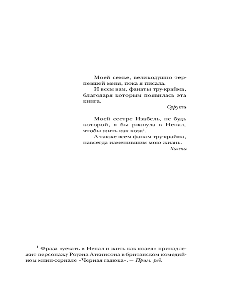 Собрав парадоксы и городские легенды, мифы и предубеждения, а также добавив щепотку научных фактов, девушки выясняют, откуда берется тяга к убийствам, что человек чувствует во время убийства, как мы становимся жертвами, но при этом сами тянемся к этим монстрам, или... таким же людям, как мы? |