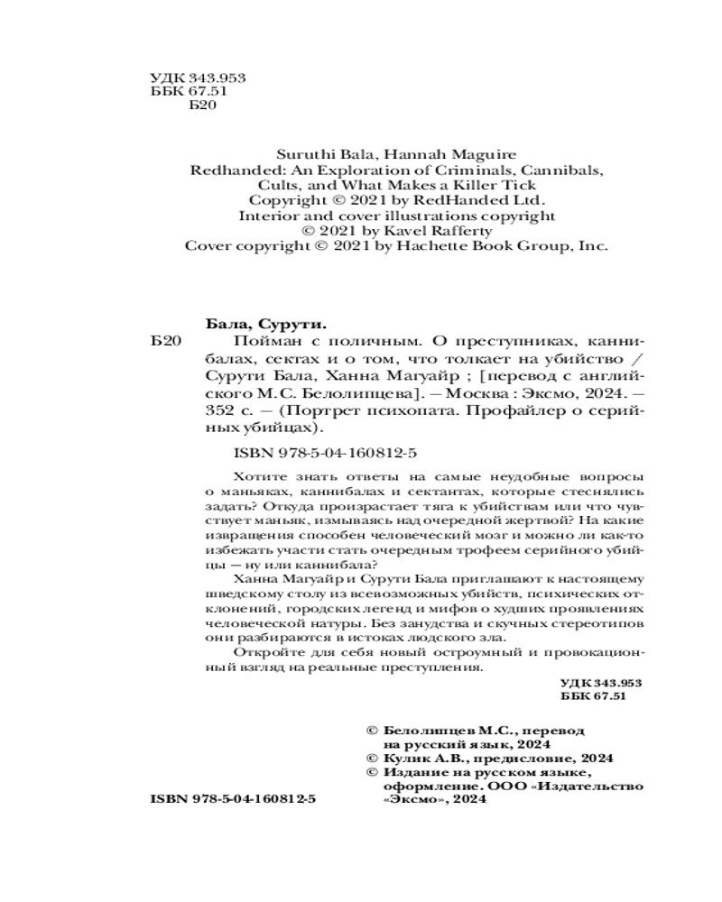 | Пойман с поличным. О преступниках, каннибалах, сектах и о том, что толкает на убийство Сурути Бала, Ханна Магуайр +132 (бонуса)