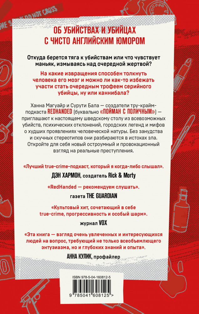 Ханна Магуайр и Сурути Бала — две ведущие true-crime подкаста RedHanded («С поличным») решили разобраться в этих вопросах. Начиналось все как невинный интерес к реальным преступлениям, а закончилось популярнейшим подкастом в Британии. С присущим им остроумием и чувством юмора они погружаются в сознание не самых приятных людей, чтобы разобраться в природе преступлений.