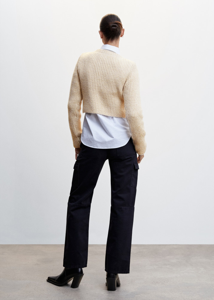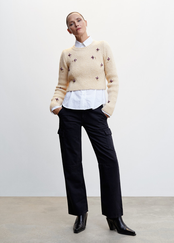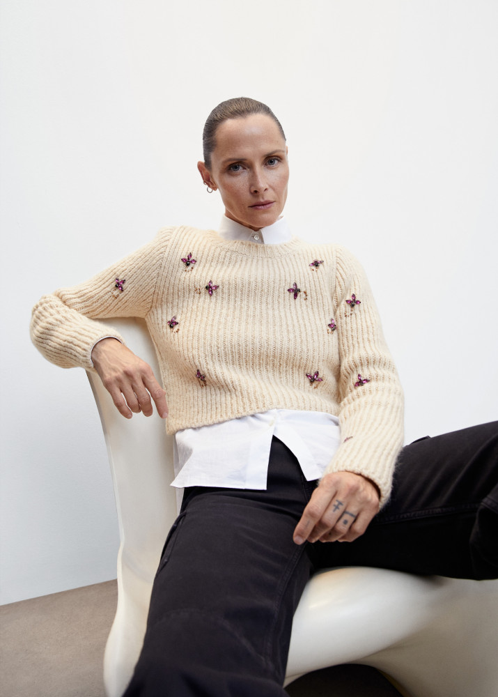 Действительно приятный материал , не выглядит дёшево или сплошной синтетикой . Размеру соответствует и даже немного маломерит . Мой размер уверенный М, так вот чтобы свитер сел , как в карточке товара нужен 48 .