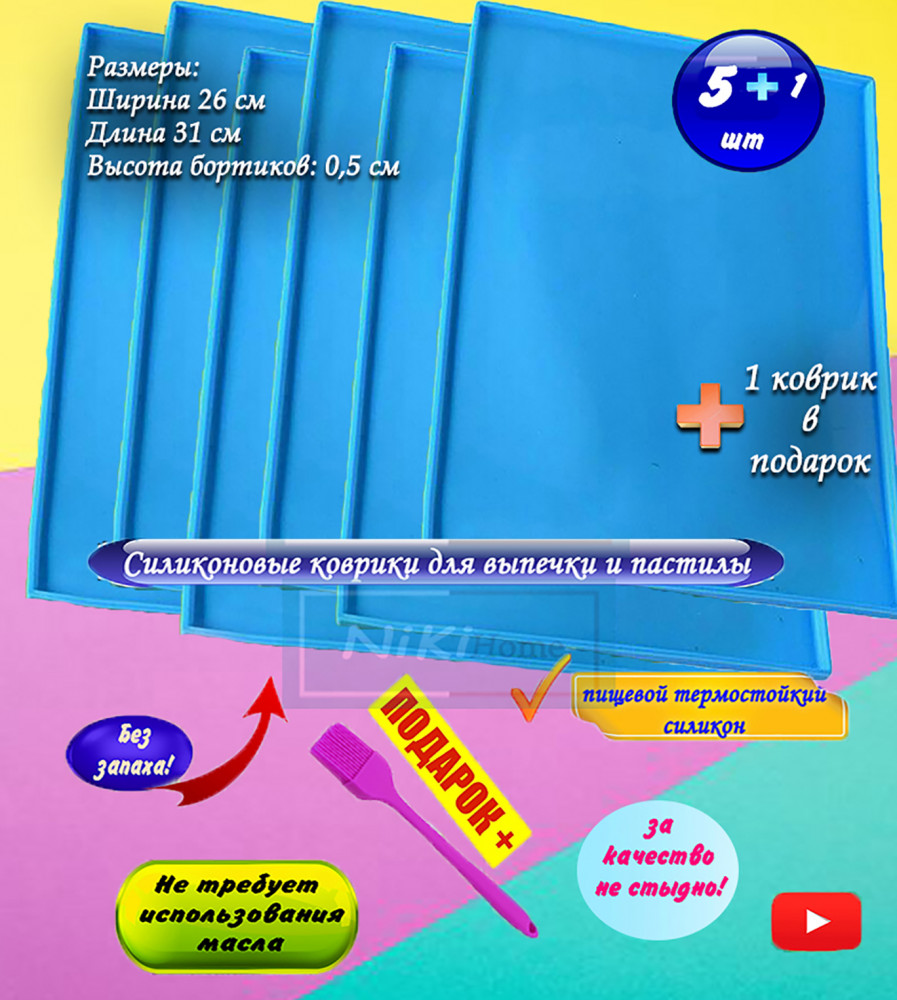 💳 Оплатить за товар можно при получении 🇰🇿 Есть бесплатная доставка по Казахстану от 1 дня 🎁 Копите бонусы с каждой покупки Поддон универсальный антипригарный многоразовый тремостойкий силиконовый (в комплекте 6 штук) отлично подходит для пастилы и выпечки изделий из теста, в том числе жидкого, а также для приготовления мяса, рыбы, птицы, фаршированных овощей и фруктовых кондитерских десертов, гранолы, печенья, роллов и меренги. Наличие бортика предотвращает вытекание сока, образующегося в процессе приготовления блюда. Антипригарная поверхность; не требуется использование масла и жиров; подходит для всех типов печей. Данные коврики замечательно подходят для приготовления пастилы в дегидраторе и сушилке. Они подойдут для сушки грибов, овощей, трав, зелени, фруктов и ягод. С помощью данного силиконового коврика выпекать рулеты одно удовольствие. Вы сделаете красивый и ровный рулет, равномерно распределив начинку. Коврик изготовлен из безопасного пищевого высококачественного силикона. После придания рулету формы, его можно испечь прямо на нем. Такой коврик отлично чистится после использования, не впитывает посторонние запахи и обладает жаростойкими характеристиками. Легко очищается и моется водой, в том числе в посудомоечной машине, не требует использования масла. Коврик из силикона для выпекания — это необходимый инструмент в кухне каждого любителя выпечки. Противень представляет собой плоскую поверхность из силикона, на которой можно легко и удобно выпекать различные блюда. |