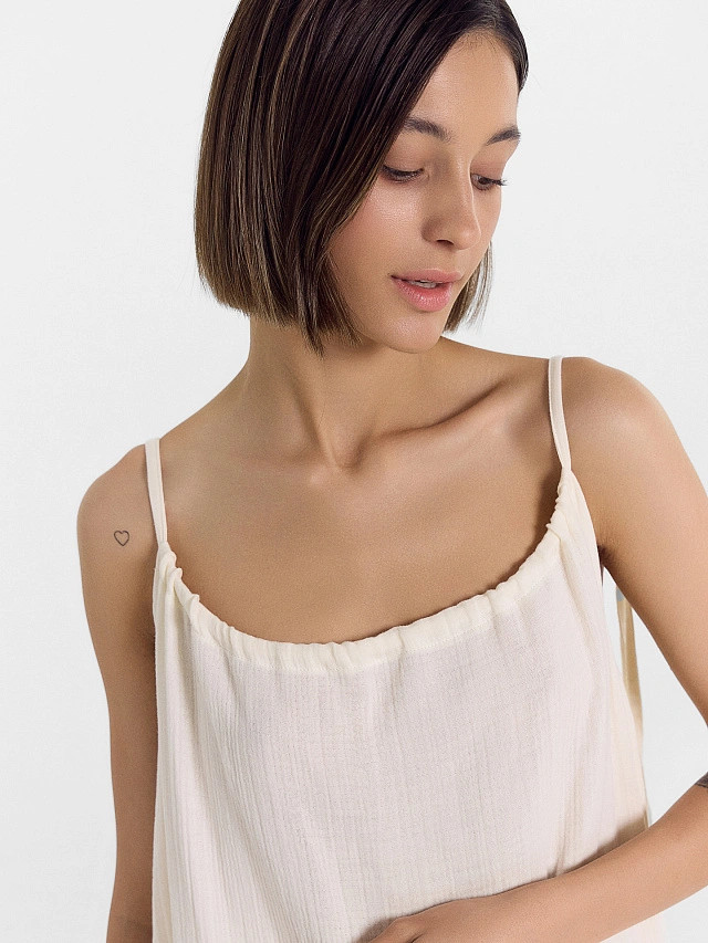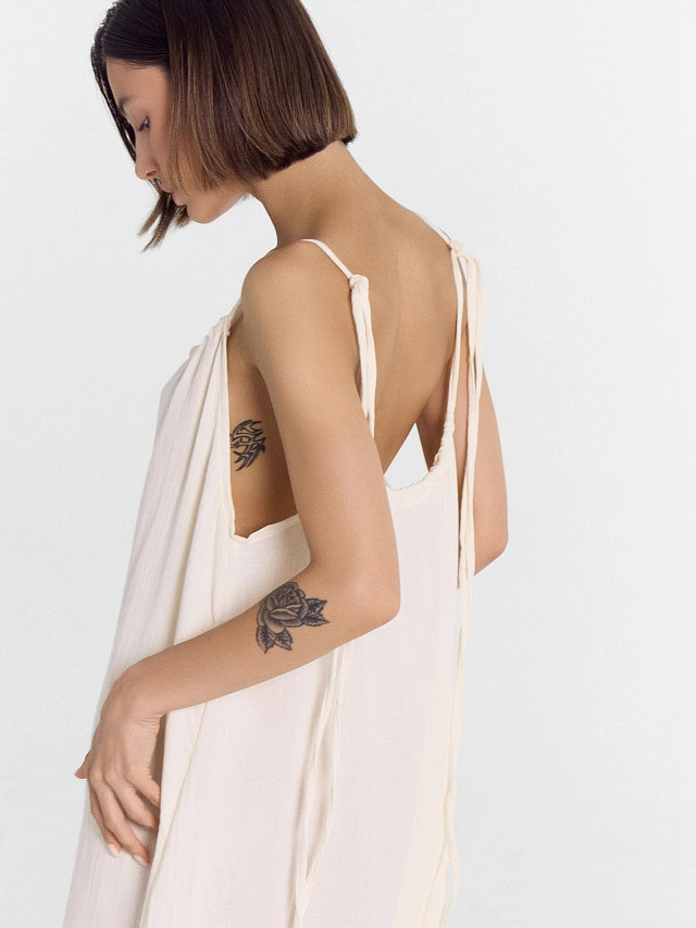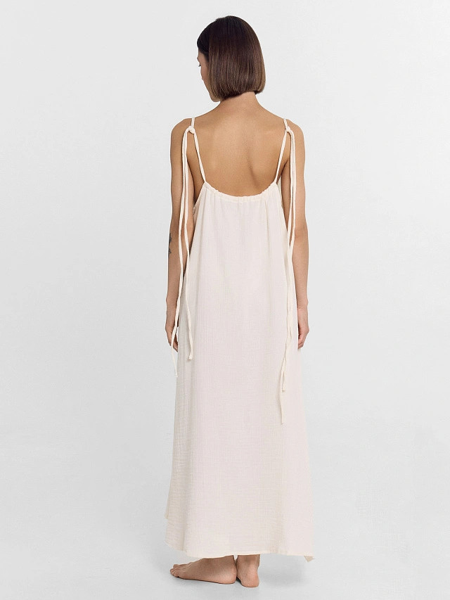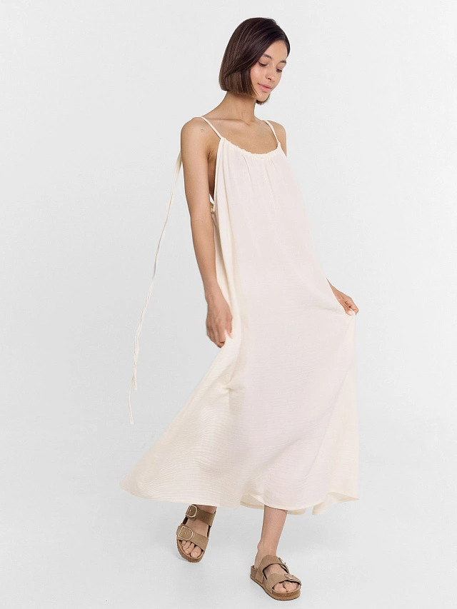 Взяла платье на размер меньше и не пожалела. Производитель заявляет на своём сайте, что это муслин и я ему верю. Ткань нежная, тонкая и немного просвечивает. Оно стало фаворитом этого сезона. Думаю, можно было попробовать заказать на два размера меньше.