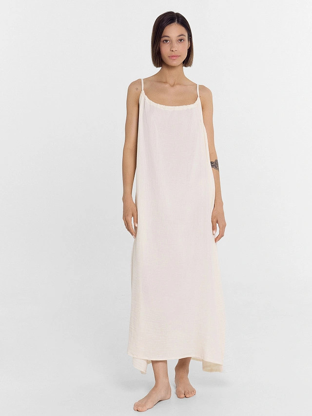 Взяла платье на размер меньше и не пожалела. Производитель заявляет на своём сайте, что это муслин и я ему верю. Ткань нежная, тонкая и немного просвечивает. Оно стало фаворитом этого сезона. Думаю, можно было попробовать заказать на два размера меньше.