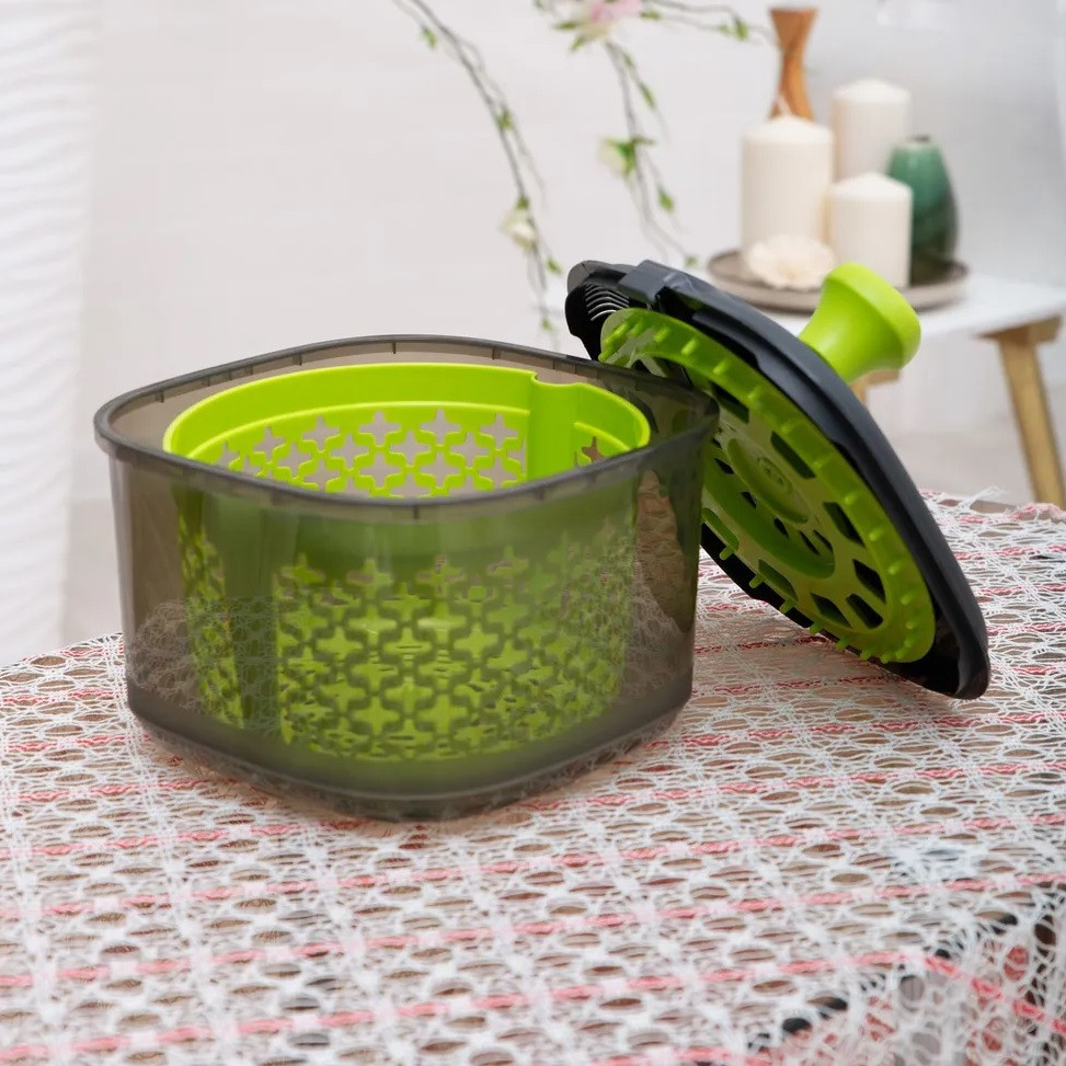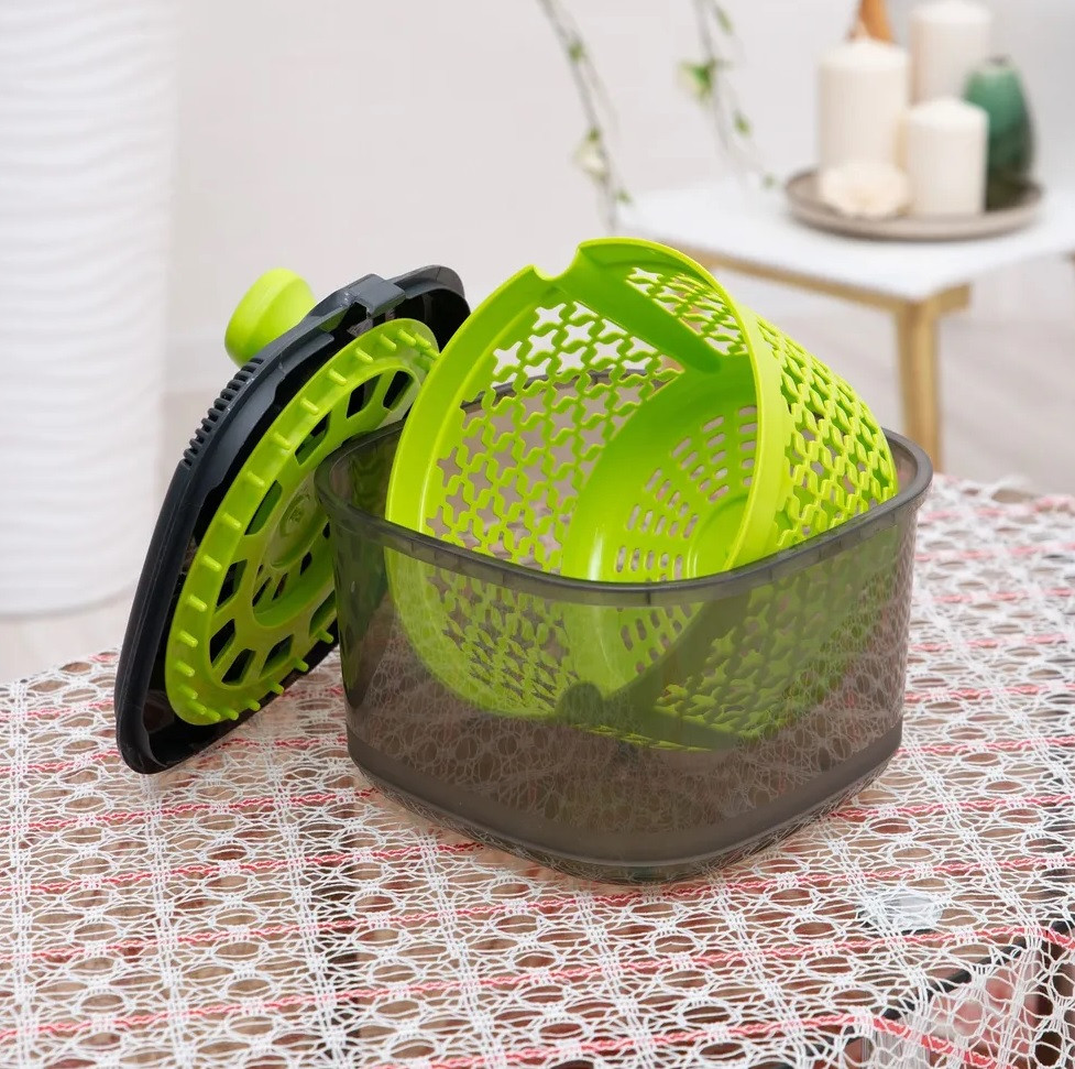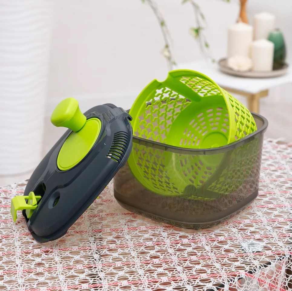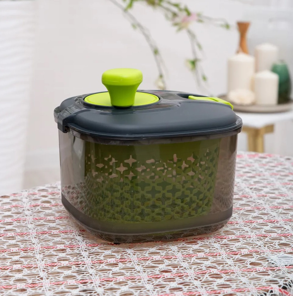 💳 Оплатить за товар можно при получении 🇰🇿 Есть бесплатная доставка по Казахстану от 1 дня 🎁 Копите бонусы с каждой покупки Сушилка для зелени с механической центрифугой выполнена из качественного полипропилена. Сушилка проста в использовании — положите вымытую зелень или салат в сушилку и покрутите ручку. Благодаря специальному механизму внутренняя корзинка начинает очень быстро вращаться. Когда сушилка разогналась, ее становится очень легко вращать! Салат и зелень не теряют привлекательности, листки не сминаются, но продукты при этом совершенно сухие и готовые к использованию. Такая сушилка станет незаменимым помощником на кухне! |