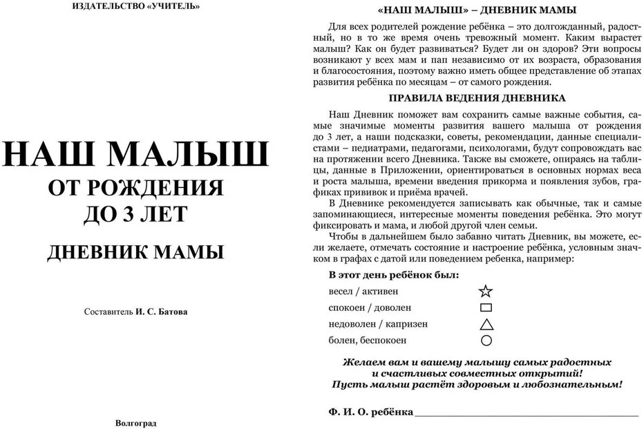 Наш малыш от рождения до 3 лет: Дневник мамыВ данный момент этот товар отсутствует в продаже. Возможно, у нас найдется аналогичный или похожий товар здесь. Все на свете мамы стремятся запечатлеть события жизни их малыша с первых дней. Лучшим помощником для таких записей станет дневник «Наш малыш». Это ДНЕВНИК для вас, МАМЫ! |