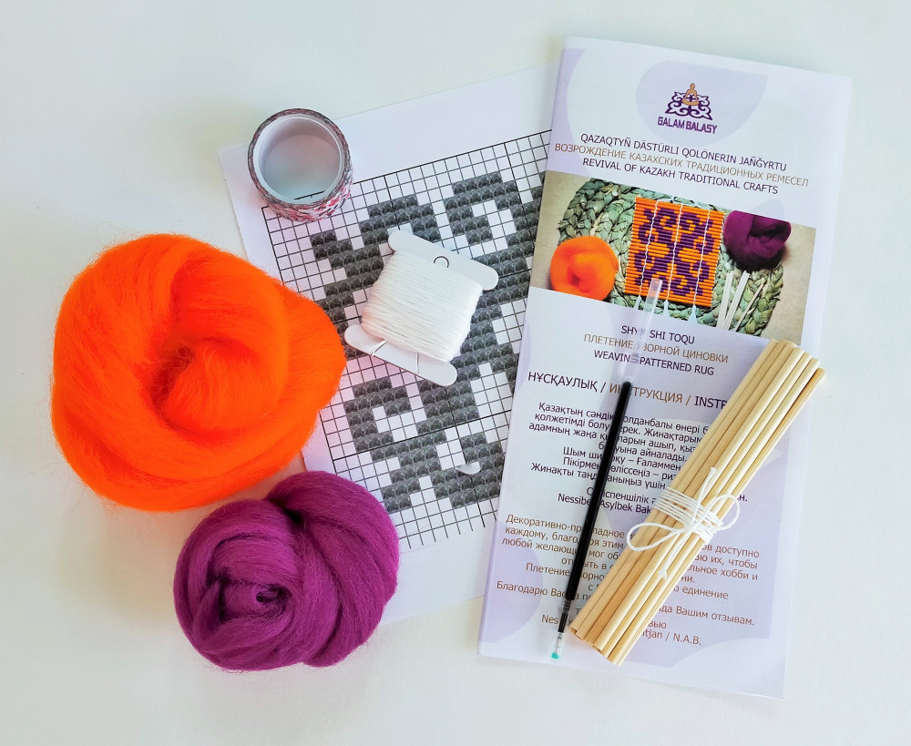 💳 Оплатить за товар можно при получении 🇰🇿 Есть бесплатная доставка по Казахстану от 1 дня 🎁 Копите бонусы с каждой покупки Плетение циновок — это древнейшее ремесло казахов. К примеру, орнамент «Törtqulaq» обнаружен в древнем кургане, построенном в V-II веках до н.э. Если хотите познакомиться с уникальным казахским прикладным искусством, то данный набор для вас. Shym Shi / Узорная циновка начинается с того, что каждую палочку оплетают цветной шерстью, создавая красивый орнамент. Плетение узорной циновки несет в себе сакральный смысл. |