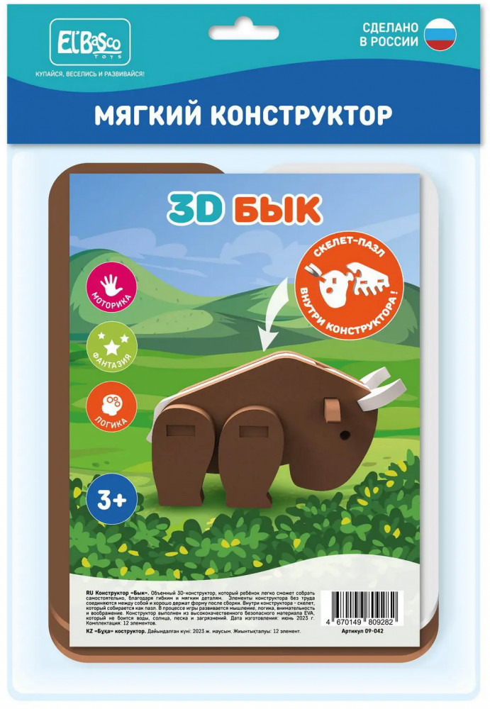 El Basco Мягкий конструктор «Бык»В данный момент этот товар отсутствует в продаже. Возможно, у нас найдется аналогичный или похожий товар здесь. Мягкий 3D конструктор-скелет «Бык» — современная игра для самых маленьких, направленная на развитие пространственного мышления! Мягкий конструктор скелет поможет малышу познакомиться с новыми формами, цветами и фигурами, активно используя логическое мышление, центры внимания и речевые навыки, а также расширяя словарный запас и кругозор. В начале игры познакомьте малыша со скелетом животного и обговорите каждую деталь, их цвет и форму, затем приступите к сборке. Вместе с малышом придумайте историю для его нового друга — большого быка, который выступает на корриде или помогает в домашнем хозяйстве, добрый он или опасный, как с ним подружиться. Развивающий конструктор для малышей выполнен из гибкого, гипоаллергенного и приятного на ощупь материала EVA. Благодаря износостойким качествам материала, который не боится воды, песка, солнца и загрязнений, эта игрушка будет радовать вашего малыша долгое время. Мягкий конструктор для детей придется по душе мальчикам и девочкам, надолго увлечет маленьких фантазеров и поспособствует раннему развитию. |