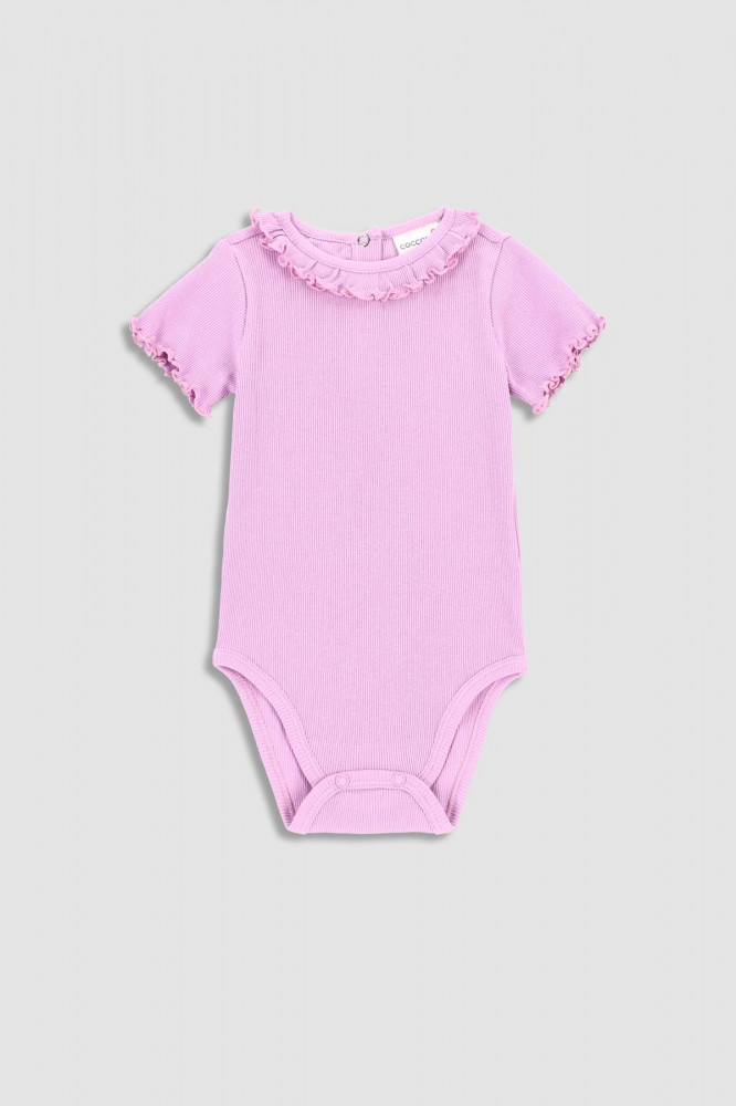 Боди с короткими рукавами для девочки. Застегивается на кнопки. Ребристая ткань. Гладкое тело — лучший выбор на каждый день, но также и для более важного случая. Наше изделие из серии Retro Picnik Newborn застегивается на кнопки, что позволит легко переодеть даже самых занятых детей. Нежная оборка на вырезе и рукавах сделает каждую маленькую принцессу очаровательной.