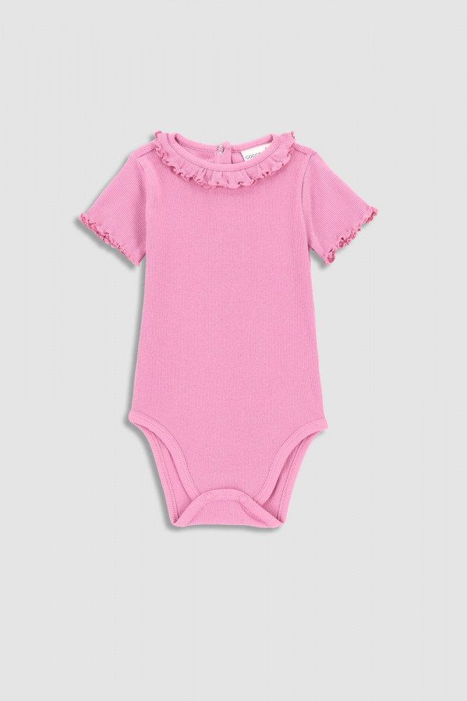 Боди с короткими рукавами для девочки. Застегивается на кнопки. Ребристая ткань. Гладкое тело — лучший выбор на каждый день, но также и для более важного случая. Наше изделие из серии Retro Picnik Newborn застегивается на кнопки, что позволит легко переодеть даже самых занятых детей. Нежная оборка на вырезе и рукавах сделает каждую маленькую принцессу очаровательной.