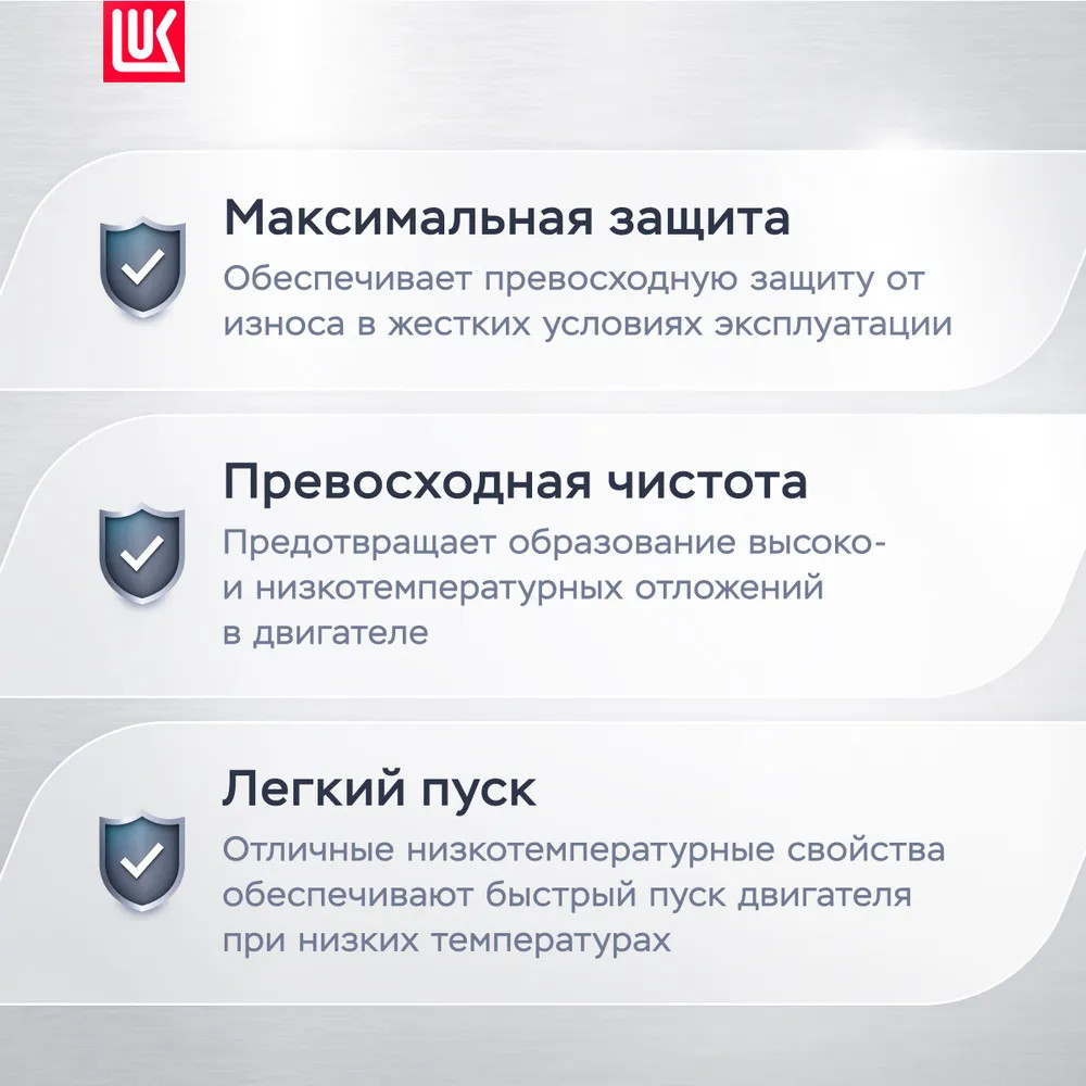• улучшенные вязкостно-температурные характеристики гарантируют надежную защиту деталей двигателя при предельных нагрузках;