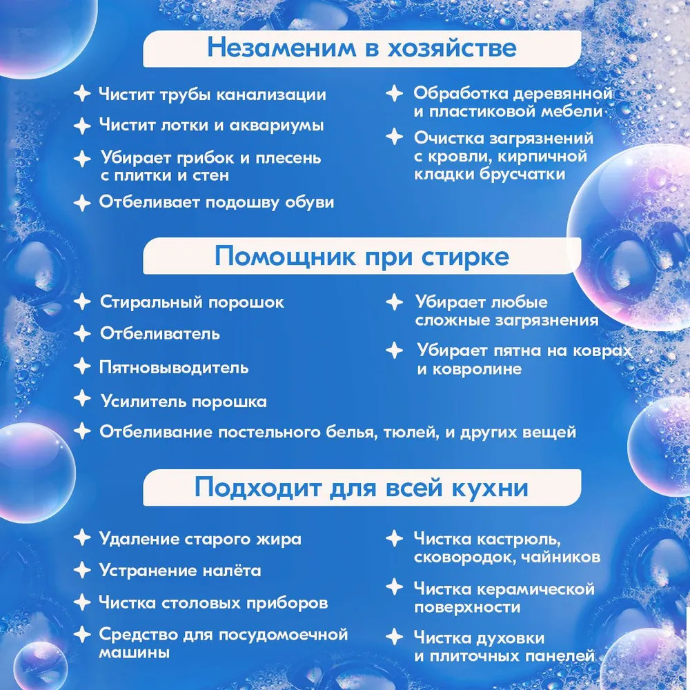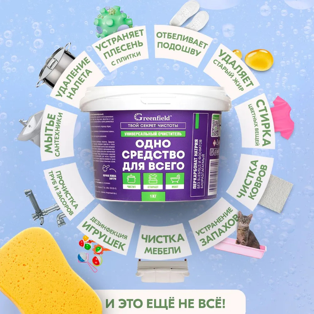 💳 Оплатить за товар можно при получении 🇰🇿 Есть бесплатная доставка по Казахстану от 1 дня 🎁 Копите бонусы с каждой покупки Эффективное универсальное чистящее средство на основе активного кислорода имеет широкий спектр применения: |