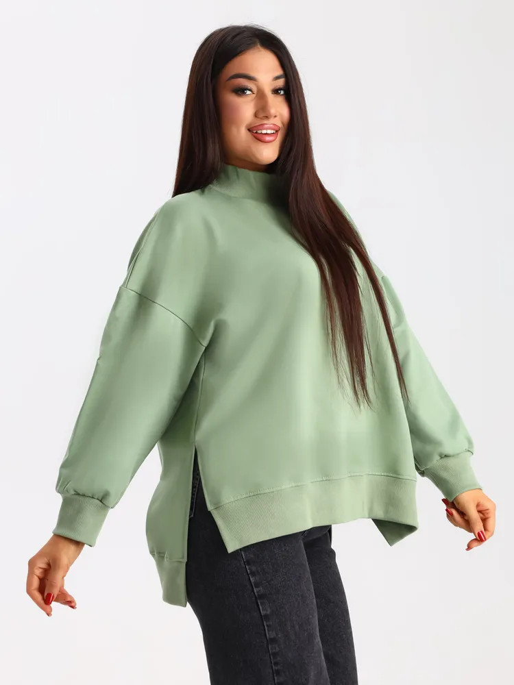 На свой 56 размер, рост 165 см, ог 115, от 97, об 128 кофточка села прекрасно! Свободно, как я и хотела. Даже очень свободно! Сзади длиннее, чем спереди, хорошо прикрывает попу. Смотрится очень стильно, современно. В общем мне очень нравится!👍 Возьму ещё лавандовую.