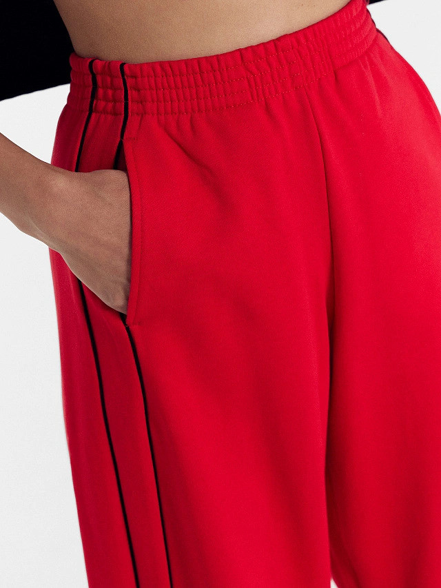 Плотный хороший материал, яркие. Длинные - носить с кроссовками-ботинками на высокой подошве (мой рост 167 см.) На свой размер М-L я взяла XS (других размеров уже не оставалось), как не странно, но подошли по размеру. У меня из этой же серии красная футболка есть - так что ношу как костюмчик - очень классно сидят вещи вместе.