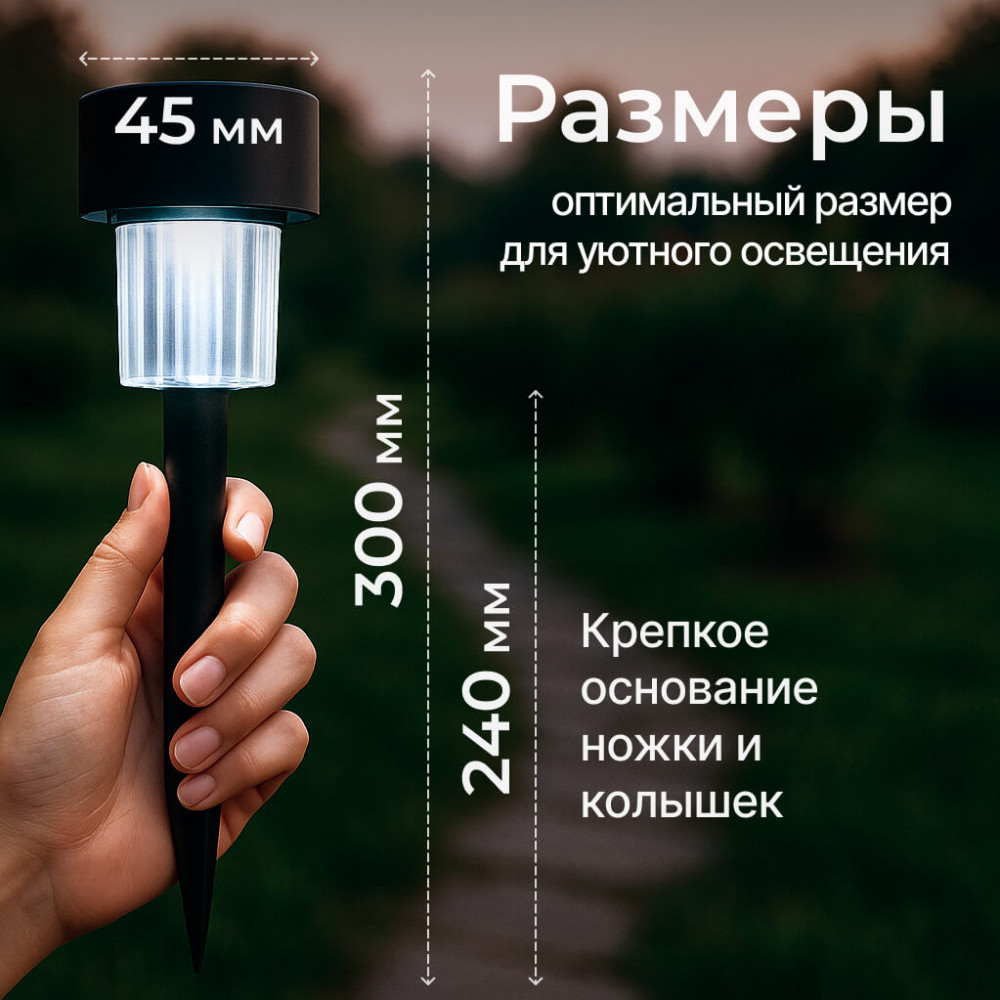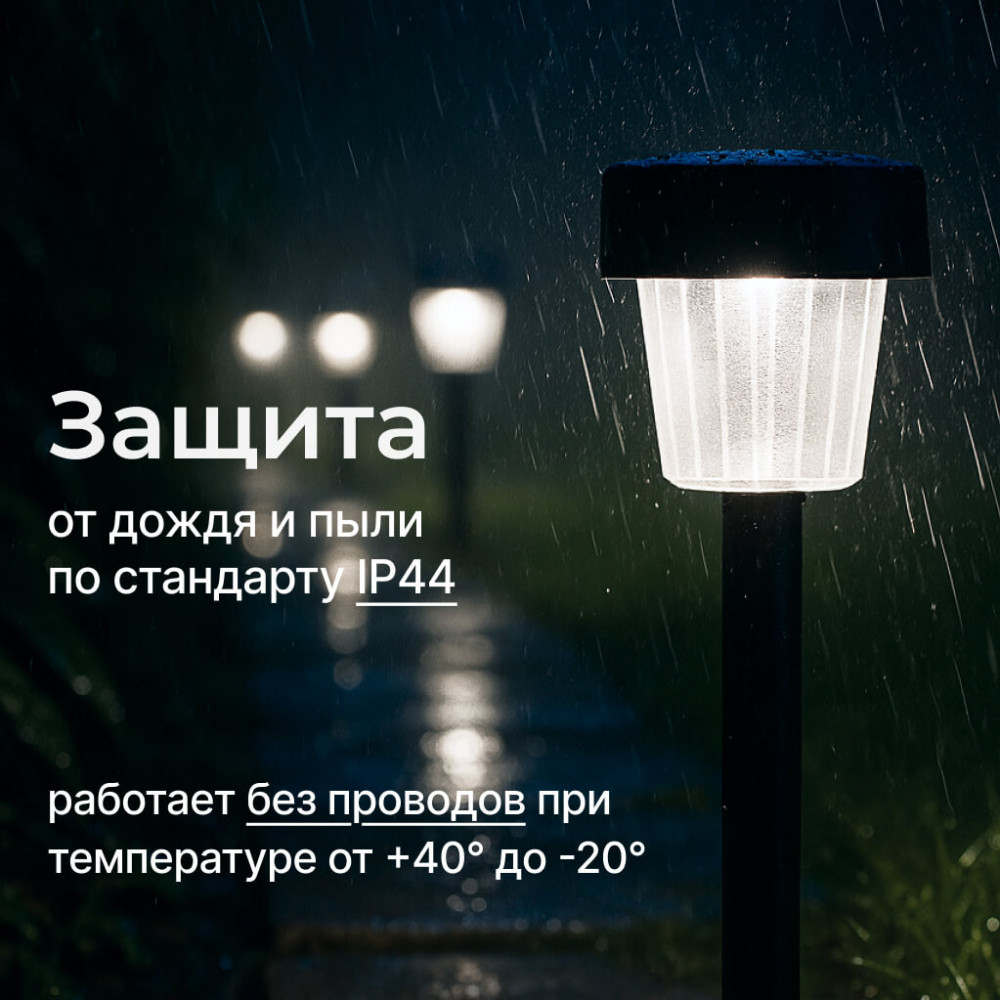 Важно знать: эти светильники созданы для декоративной и ориентационной подсветки, а не для яркого освещения площадки. Время работы зависит от сезона и инсоляции: в пасмурные дни и в тени заряд и яркость ниже.