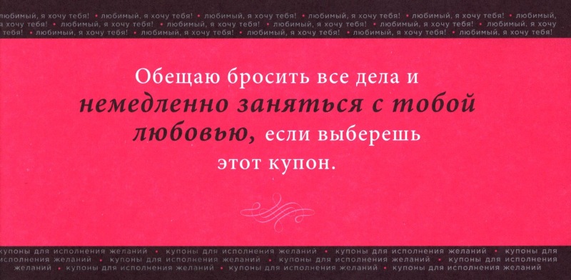 Интересный, интригующий, веселый и незабываемый подарок любимому мужчине! Пусть купоны скажут все, что вы не могли сказать друг другу! Нет границ для любви! Нет стеснению! Приятная цена за отличный подарок!