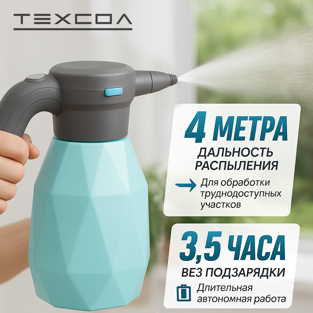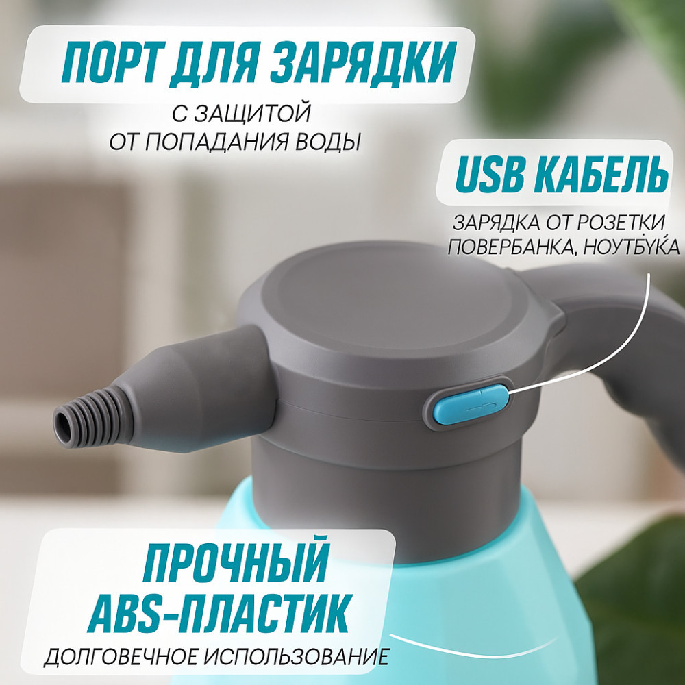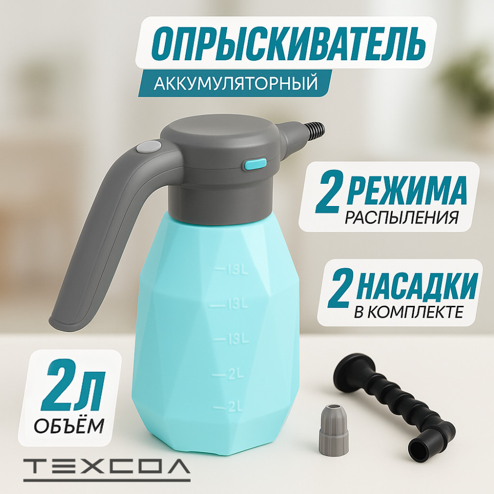 Опрыскиватель Техсол аккумуляторный 2-в-1, 2 л, USB-зарядка, дальность до 4 м. Компактный аккумуляторный опрыскиватель на 2 л для дома и сада. Самовсасывающая микропомпа даёт два режима распыления: туман и струю, с дальностью до 4 м. Работает до 3,5 часа от одной зарядки, порт USB защищён от попадания воды.