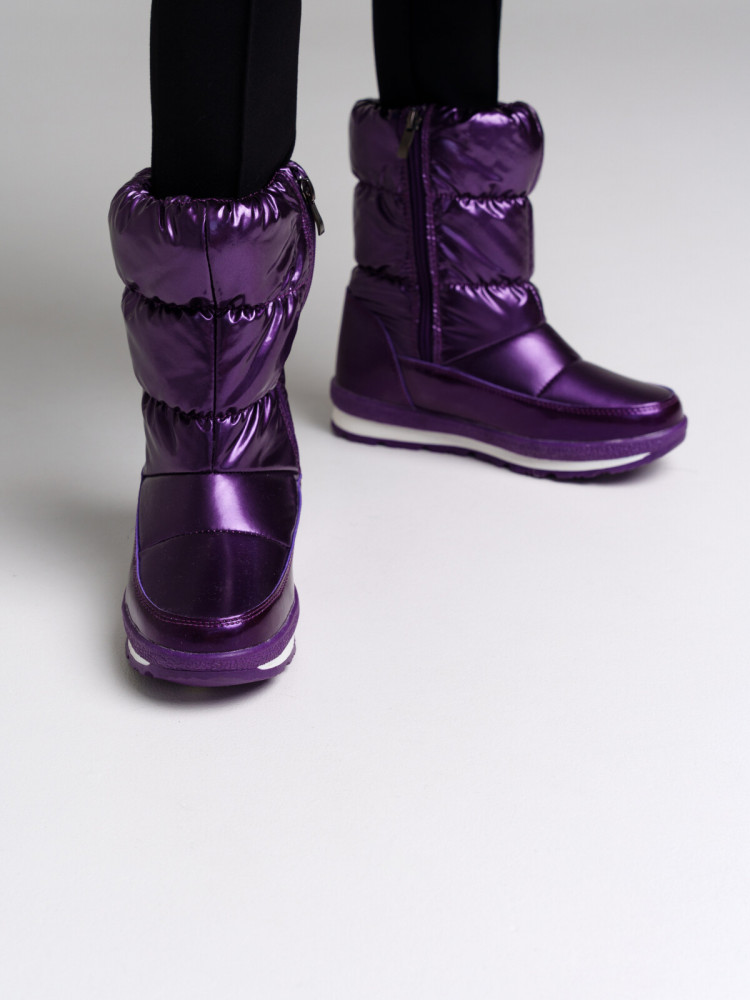 Удобная застежка-молния. Глухой клапан в области застежки-молнии – защита от дождя и снега. Формоустойчивый задник поддерживает стопу в правильном положении. Трехслойная конструкция верха обуви с высокими теплозащитными свойствами. Подкладка и стелька – шерстяной мех 80%. Подошва с противоскользящим протектором. Съемная стелька. Температурный режим: от 0°С до -20°С.