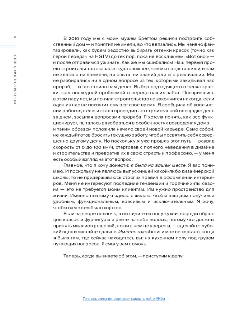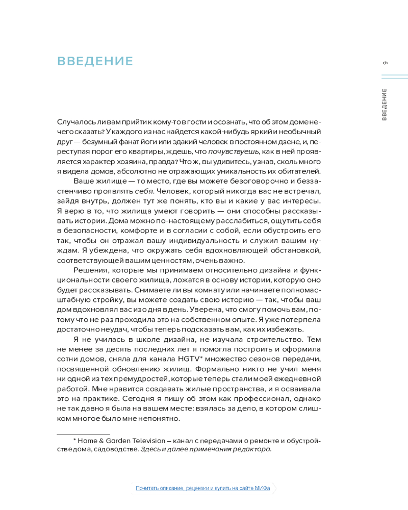 Я верю в способность дома говорить — рассказывать историю. Дом поможет расслабиться, почувствовать себя в безопасности и жить в согласии с собой, если обустроить его так, что он станет отражением нашей индивидуальности. Я верю, что важно окружать себя вдохновляющей обстановкой и жить так, чтобы ваши ценности были кристально ясны.