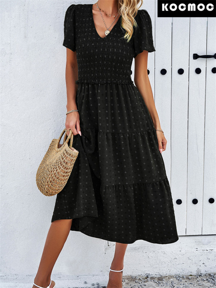 Космос Повседневное однотонное платье с V-образным вырезом и короткими рукавами