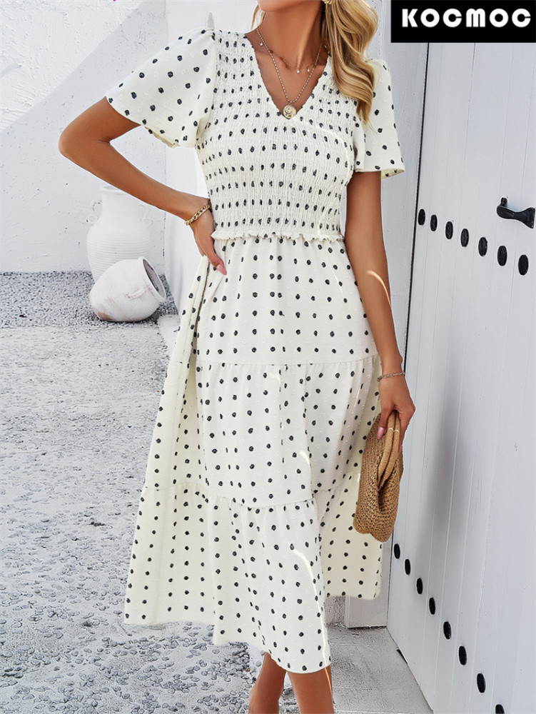 Отзывы «Повседневное однотонное платье с V-образным вырезом и короткими рукавами»