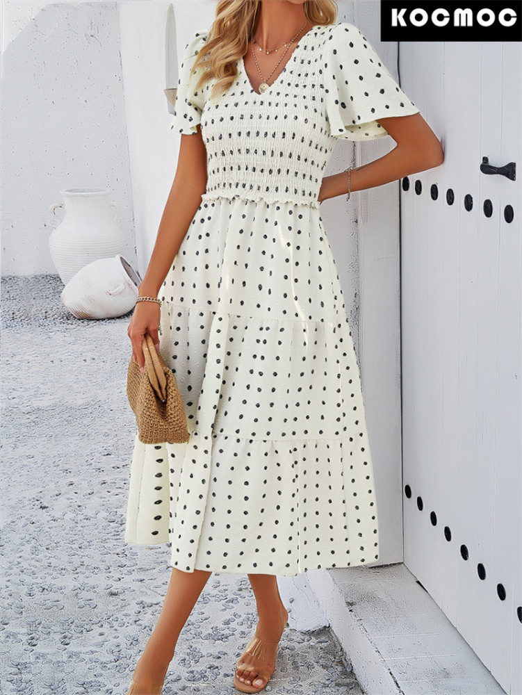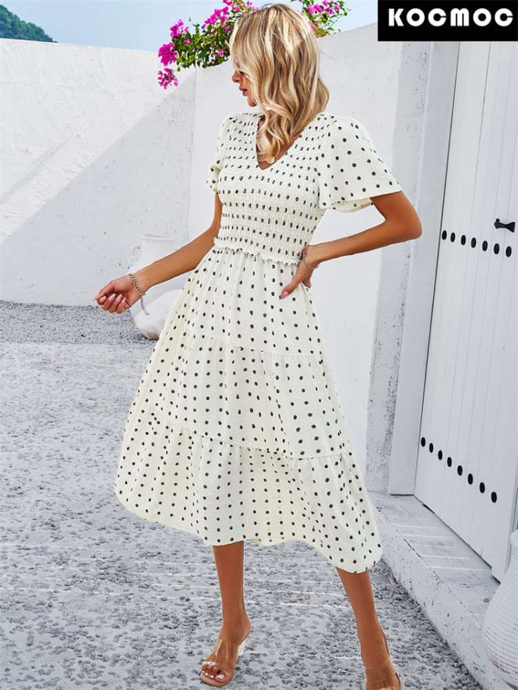 Космос Повседневное однотонное платье с V-образным вырезом и короткими рукавами