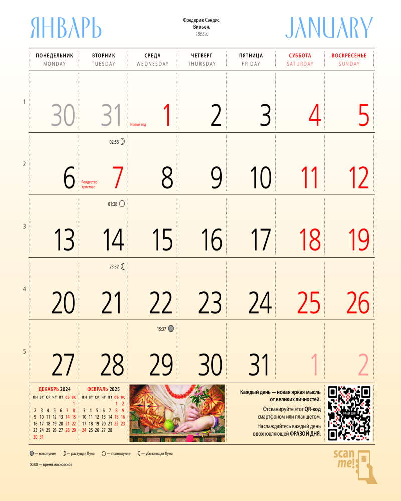 Календарь настенный на 2025 год «Прерафаэлиты»печать дизайн В данный момент этот товар отсутствует в продаже. Возможно, у нас найдется аналогичный или похожий товар здесь. Серия: Календари настенные 2025 (300×300) В этом настенном перекидном календаре на 2025 год представлены картины художников прерафаэлитов. Календарь достойно украсит интерьер вашего дома или рабочего места. А календарный блок напомнит о важных событиях года. В центре календаря помещен большой арт-постер, который может стать отдельным декоративным украшением интерьера. |