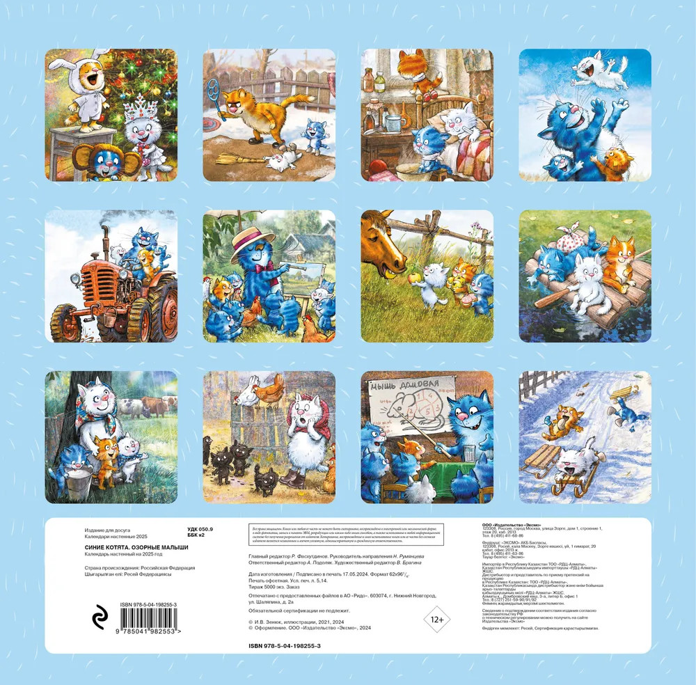 Календарь настенный на 2025 год «Синие котята. Озорные малыши»В данный момент этот товар отсутствует в продаже. Возможно, у нас найдется аналогичный или похожий товар здесь. Серия: Календари настенные 2025 (300×300) Наши настенные календари отличаются высоким качеством исполнения! Тщательно подобранные иллюстрации, напечатанные на глянцевой бумаге высочайшего качества, станут настоящим украшением дома, а в календарной сетке найдется место для ваших планов: большие клетки позволят делать записи и организовать свой год! В календаре также отмечены все государственные праздники. |