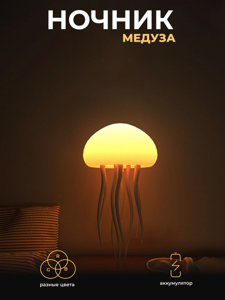 Светильник декоративный «Medusa Mood Light»В данный момент этот товар отсутствует в продаже. Возможно, у нас найдется аналогичный или похожий товар здесь. Ночник в виде медузы — уникальное сочетание красоты и технологий. Ночник с движущимися щупальцами, выполненный из качественного пластика, создает иллюзию живой медузы. Стоит на прозрачной подставке, либо можно прикрепить на присоску это создает иллюзию полетам медузы в воздухе. Он светится 72 разными цветами, наполняя комнату мягким, успокаивающим светом. Идеально подходит для создания уютной атмосферы в спальне, гостиной или детской комнате. |