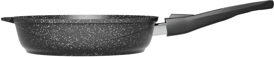 Сковорода линии Гранит с антипригарным покрытием, которое является полностью безвредным для здоровья при готовке ваших любимых блюд. Подходит для всех видов плит, кроме индукционных, изготовлена из прочного и легкого сплава пищевого алюминия. Это один из самых высококачественных и экологических материалов для производства посуды, обладает высокой тепловой проводимостью и обеспечивает равномерный нагрев.