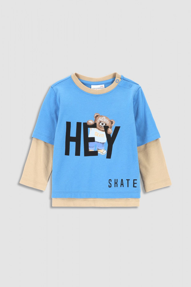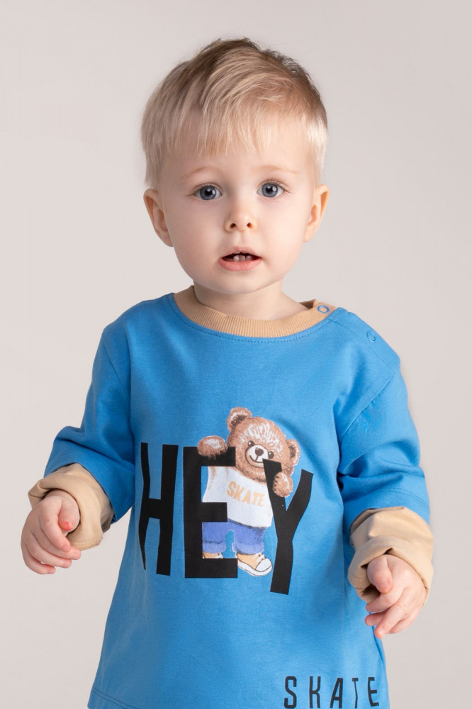 Лонгслив из коллекции Skate Newborn имеет интересную расцветку и принт в виде плюшевого мишки и надписи спереди. Рукав двухслойный, с дополнительной спущенной линией плеча. Блузка выполнена из высококачественных материалов, которые не будут раздражать нежную кожу малыша. Застежка на кнопки на плече наверняка облегчит переодевание малыша.